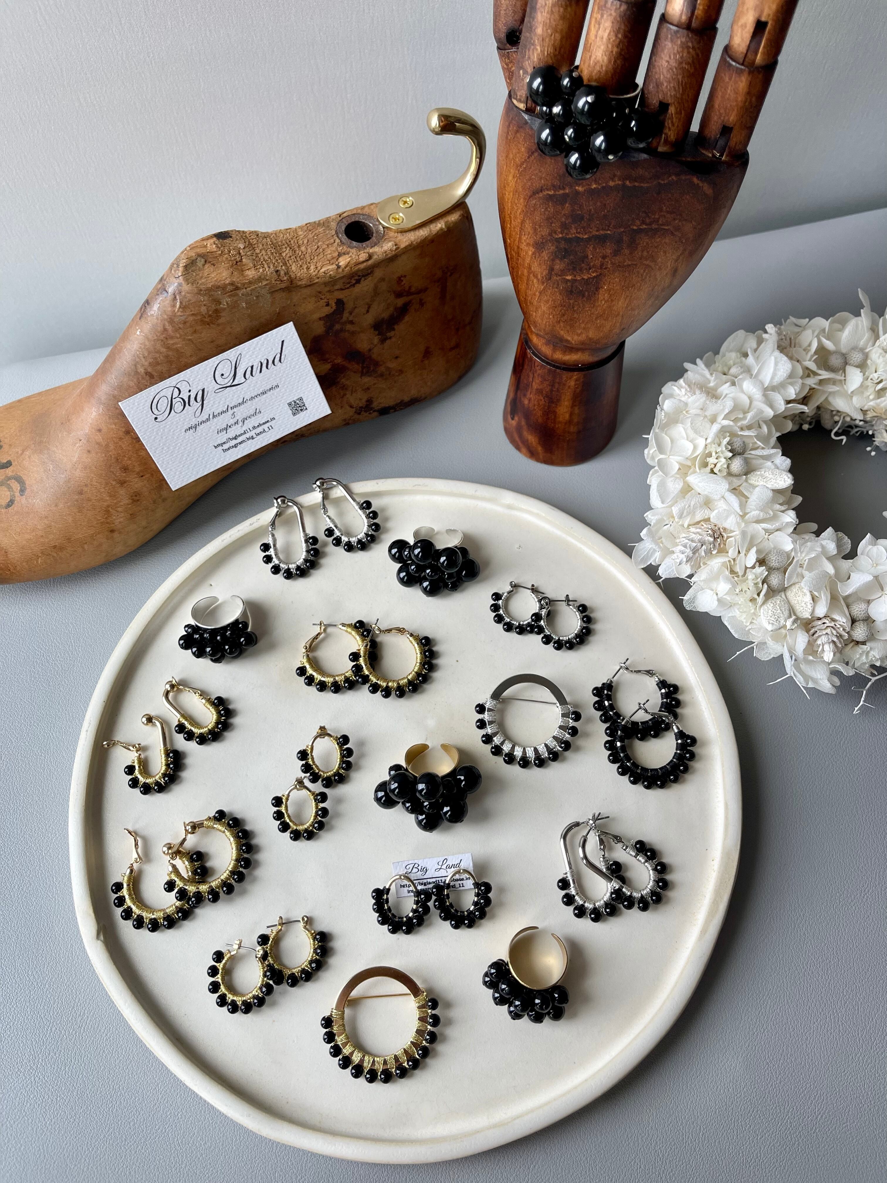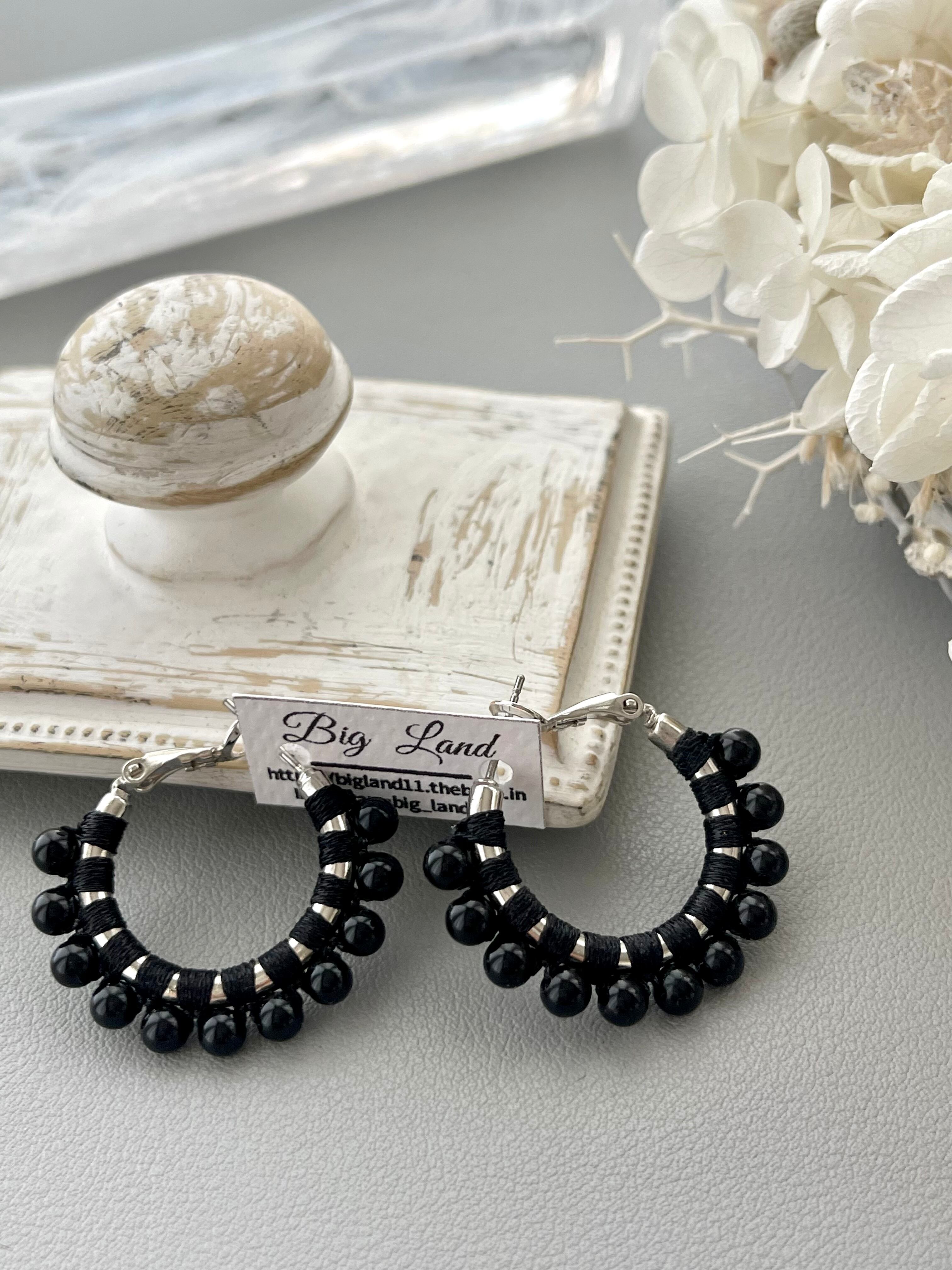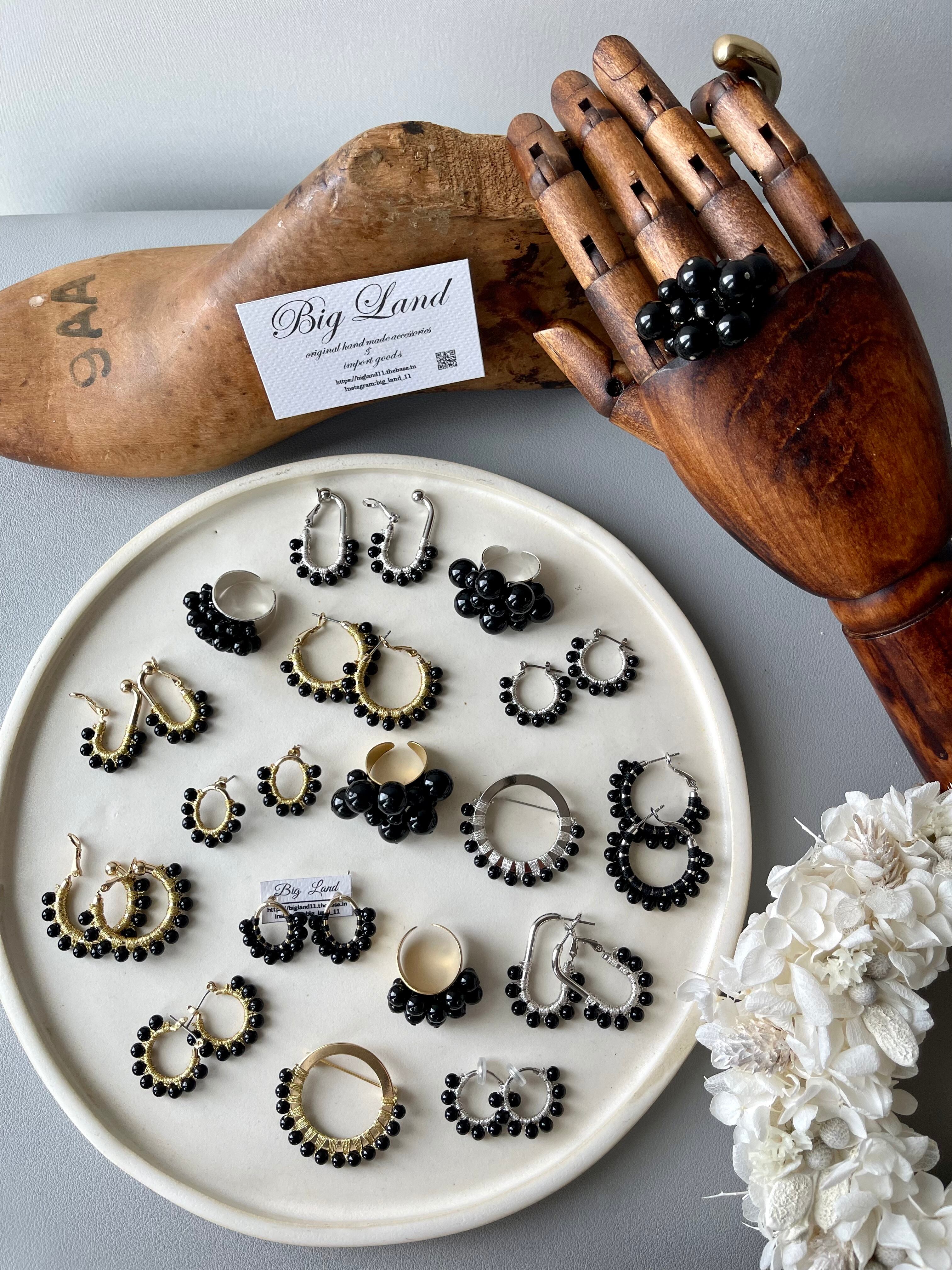 大変美しい艶々のオニキスを一粒一粒糸で丁寧にしっかり編みあげ、高級感がありどんなお洋服にも合うので出番が多くなると思います