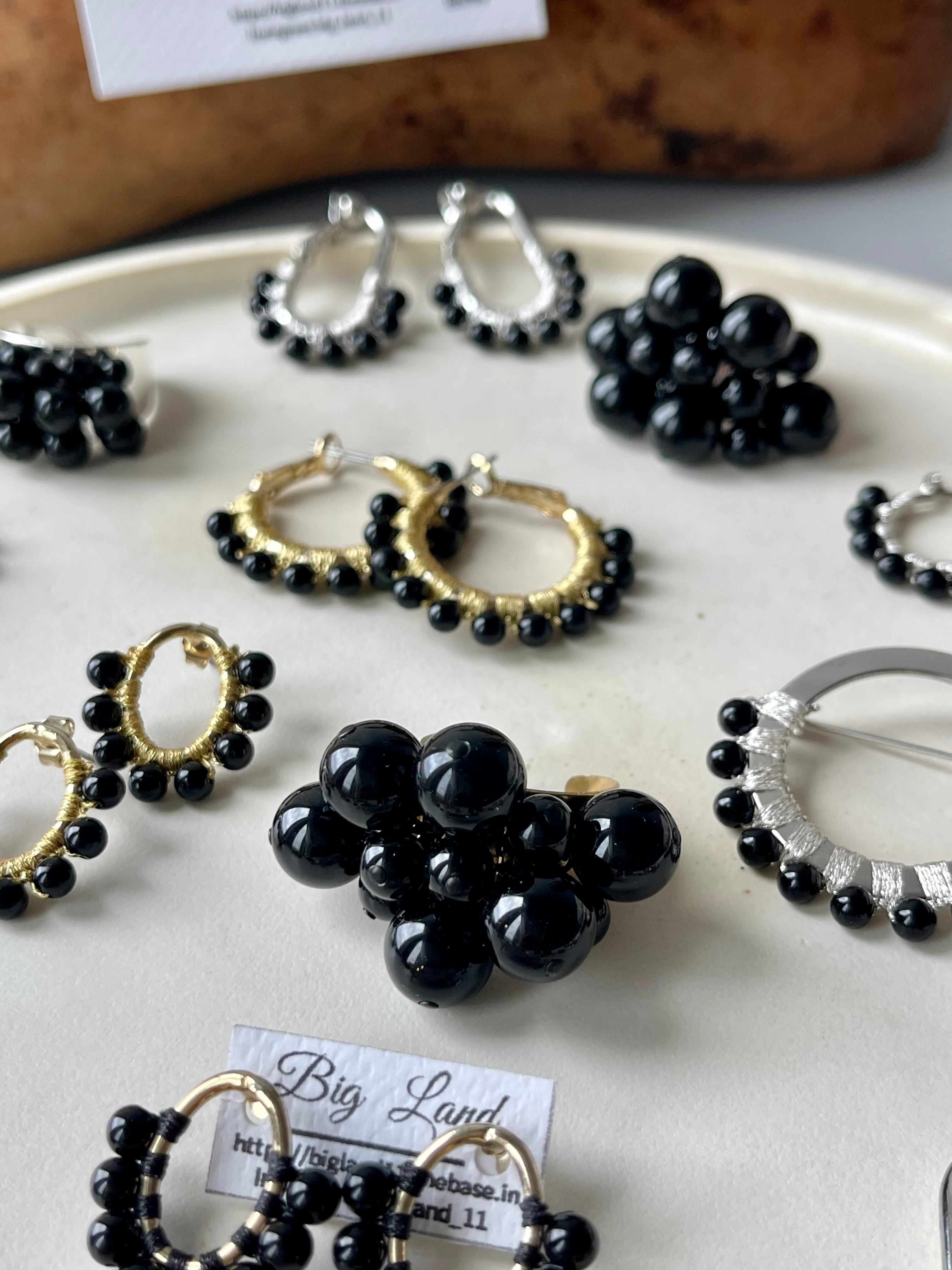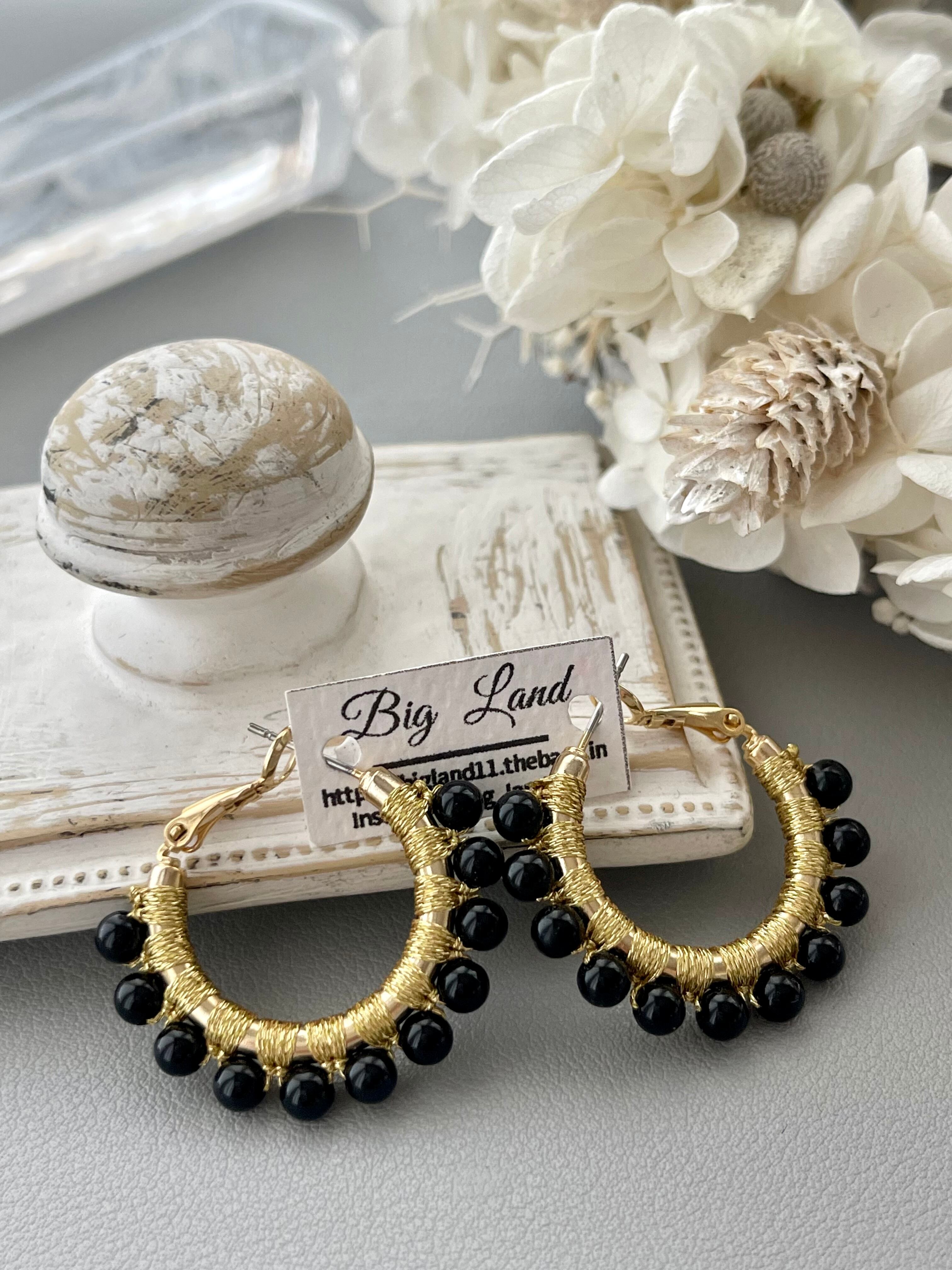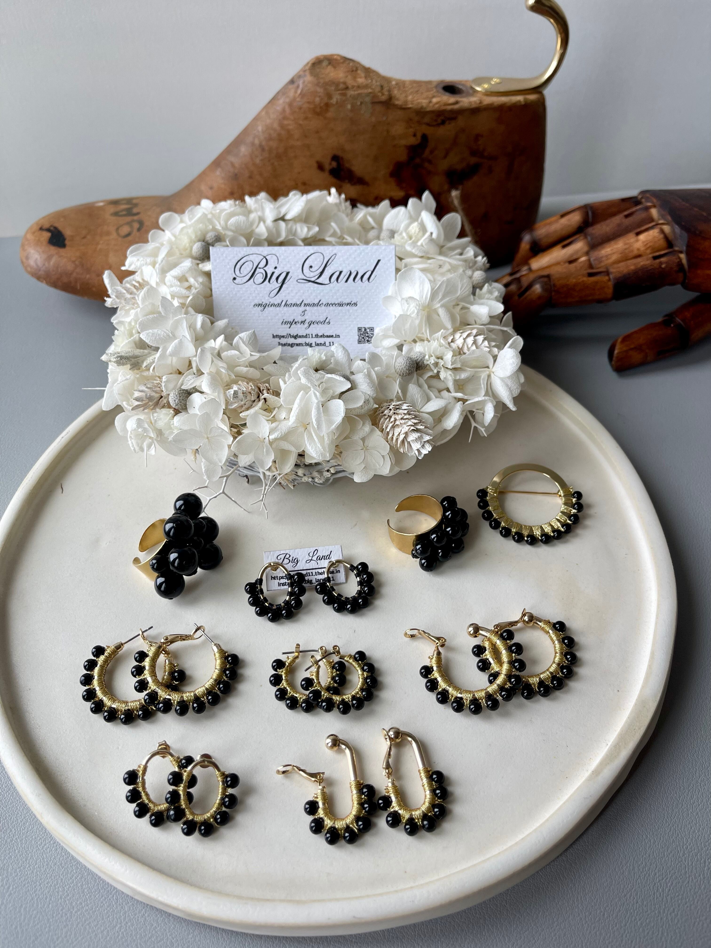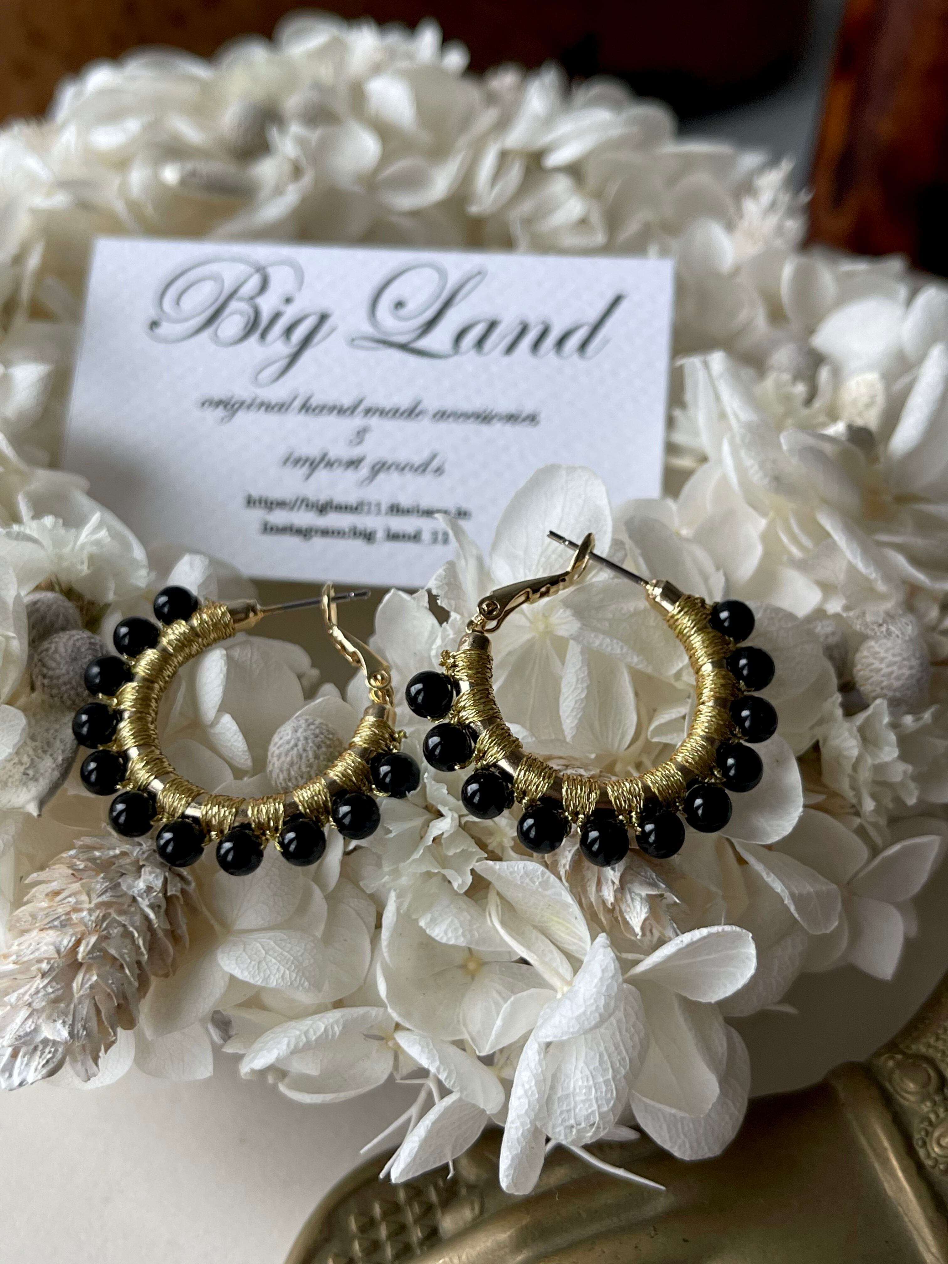 大変美しい艶々のオニキスを一粒一粒糸で丁寧にしっかり編みあげ、高級感がありどんなお洋服にも合うので出番が多くなると思います
