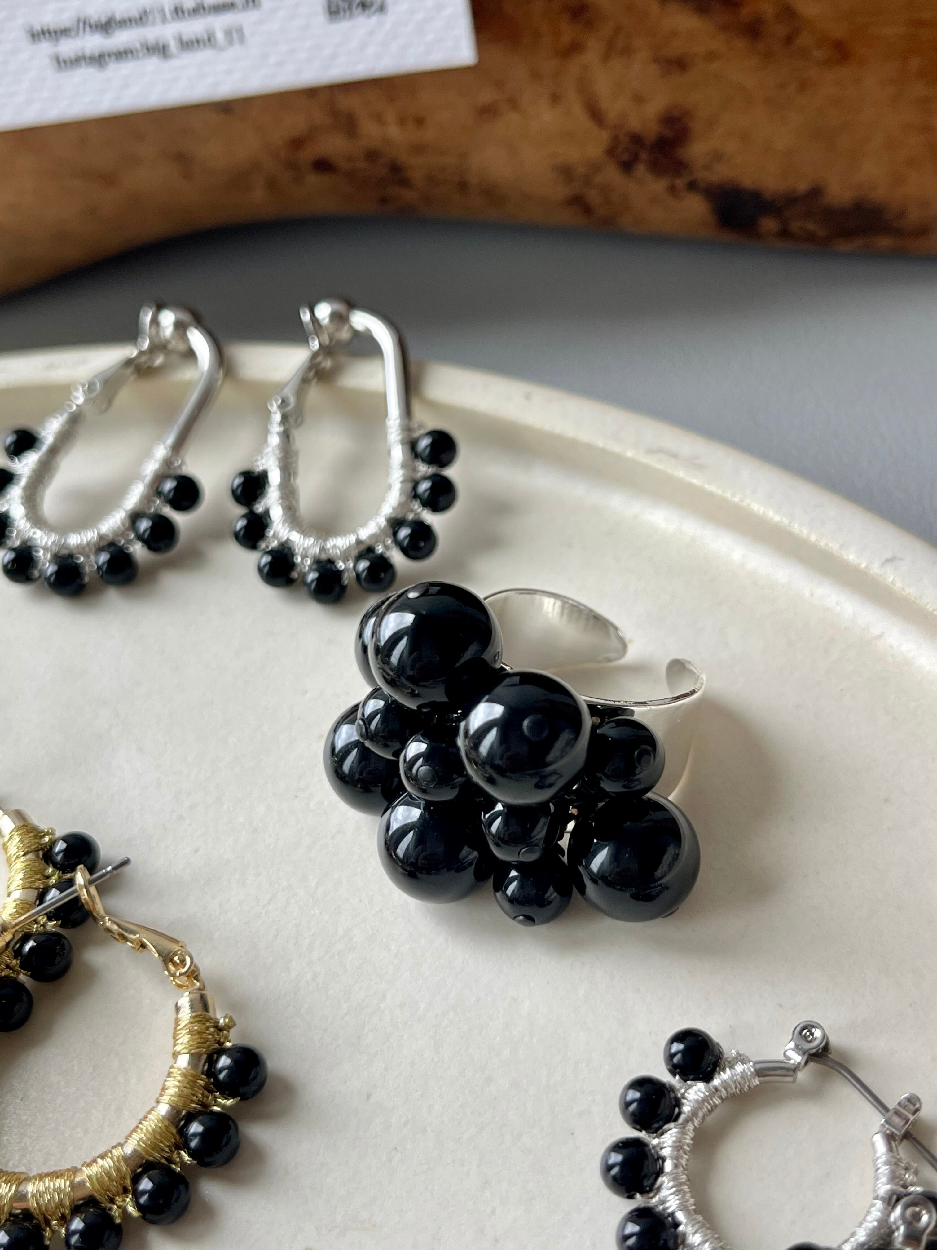 大変美しい艶々のオニキスを一粒一粒糸で丁寧にしっかり編みあげ、高級感がありどんなお洋服にも合うので出番が多くなると思います