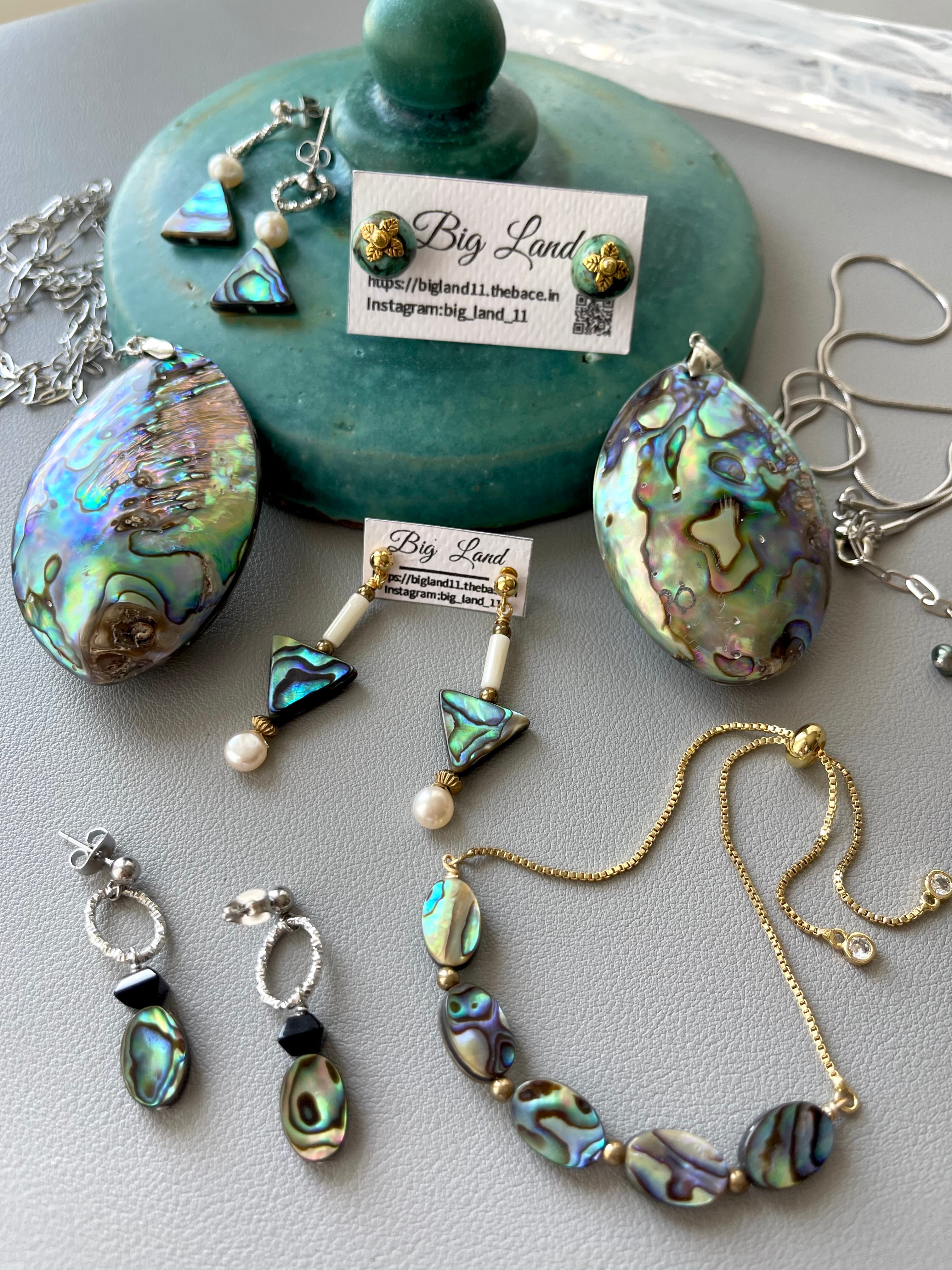 自然の美しさから生まれた模様のアバロンシェルは華があり、太陽の光を浴びると、ピンクやオレンジ、イエローといった色が混ざり合う天然カラ〜に溜め息が出る.....