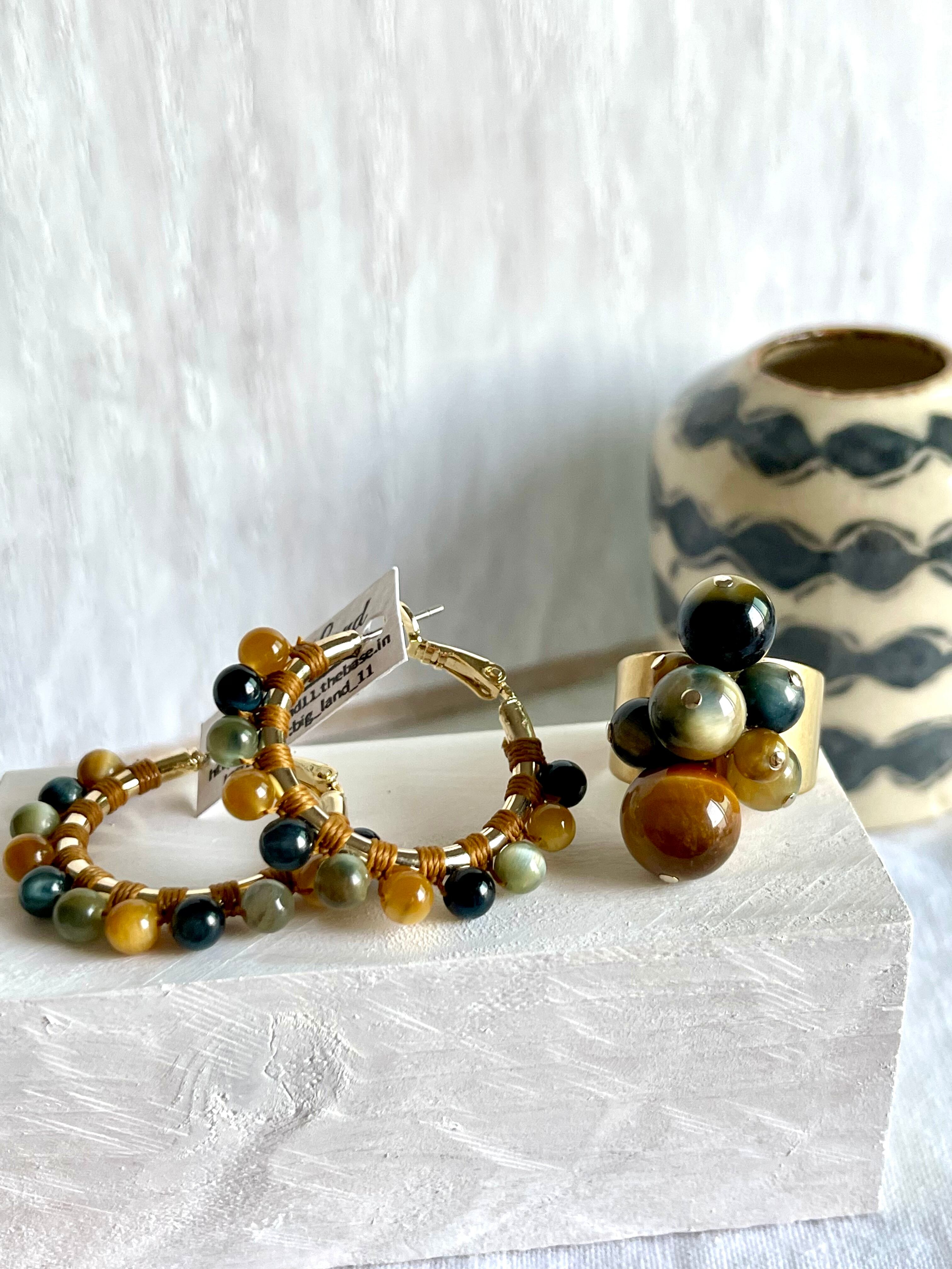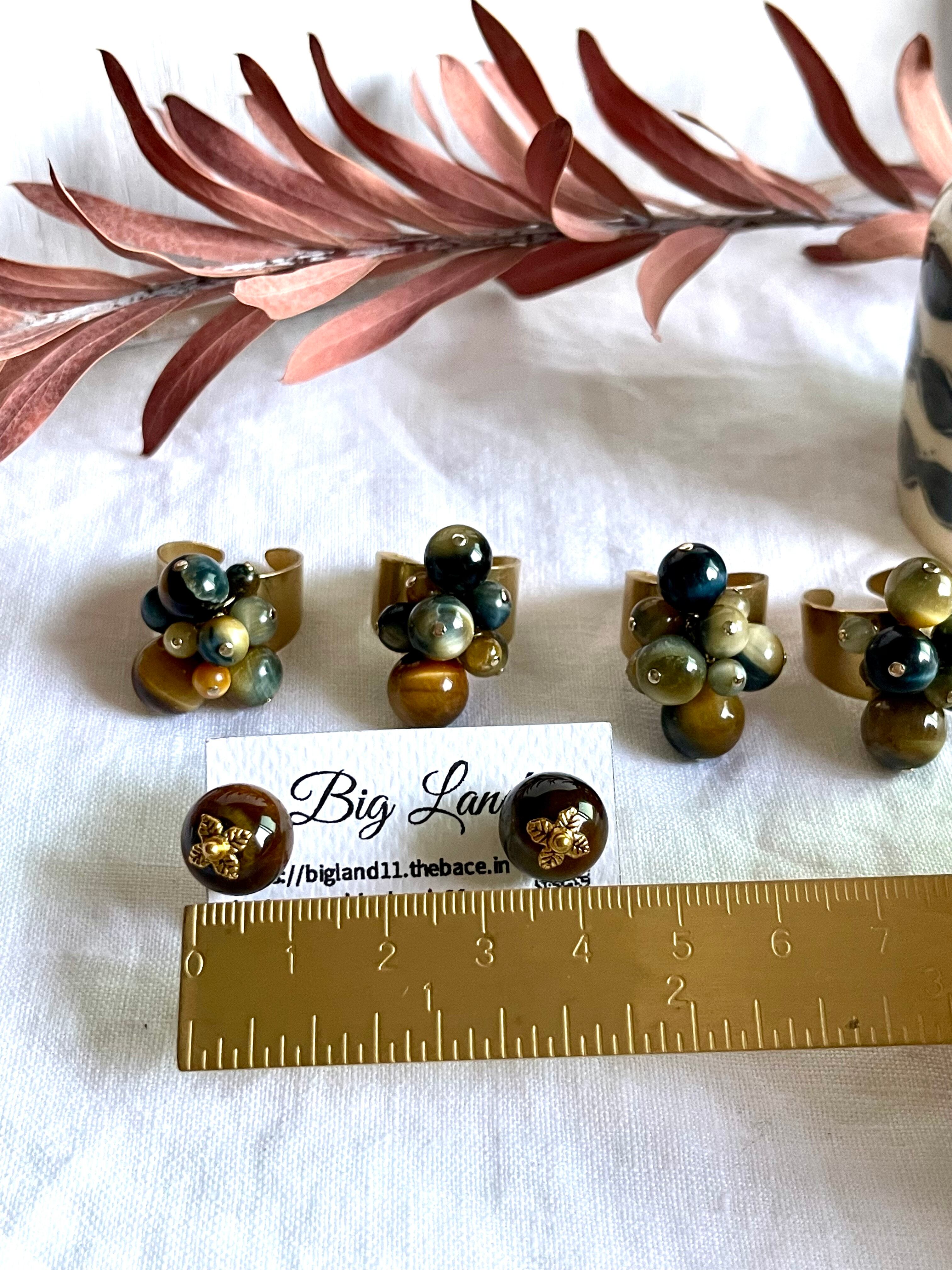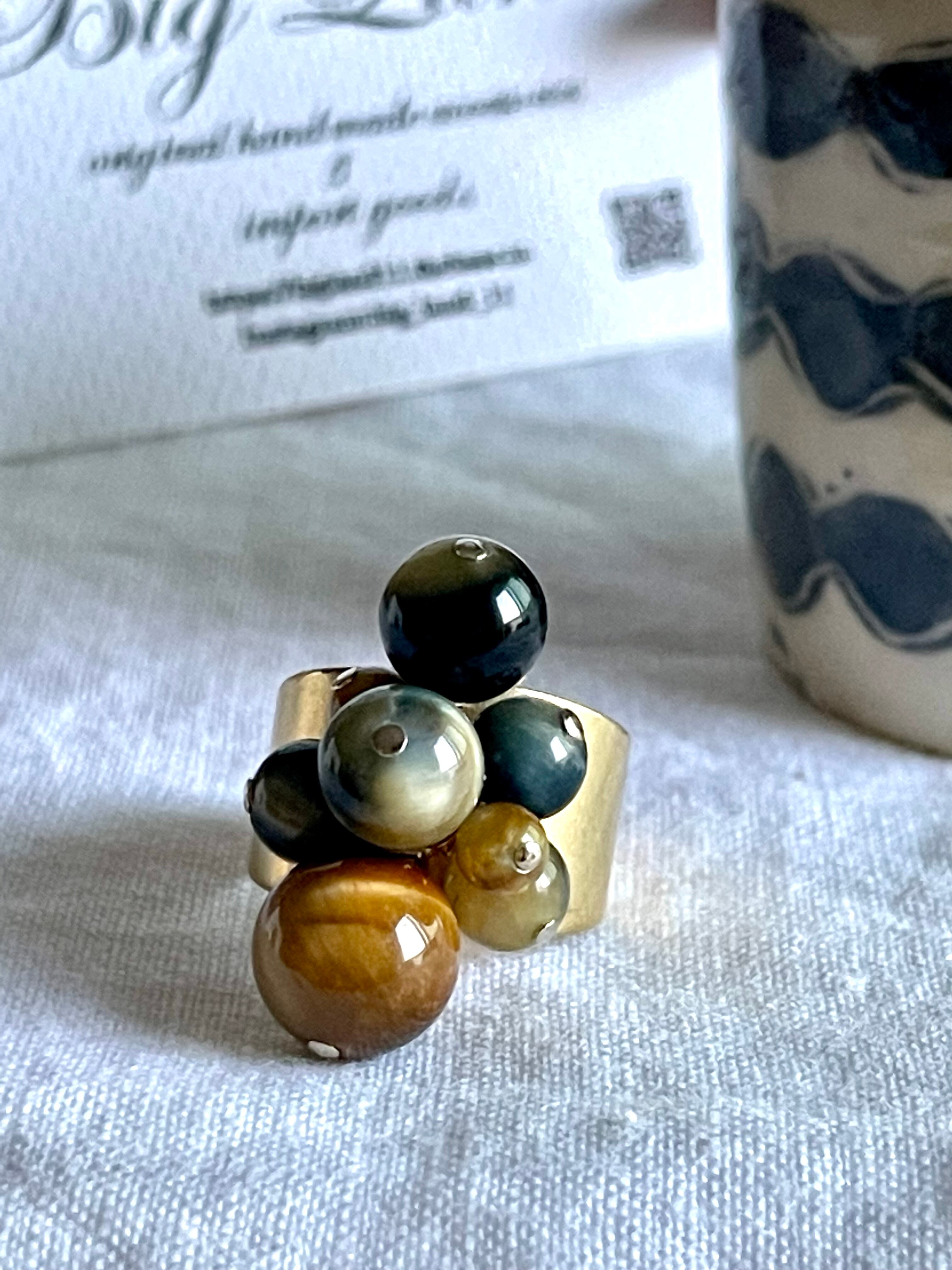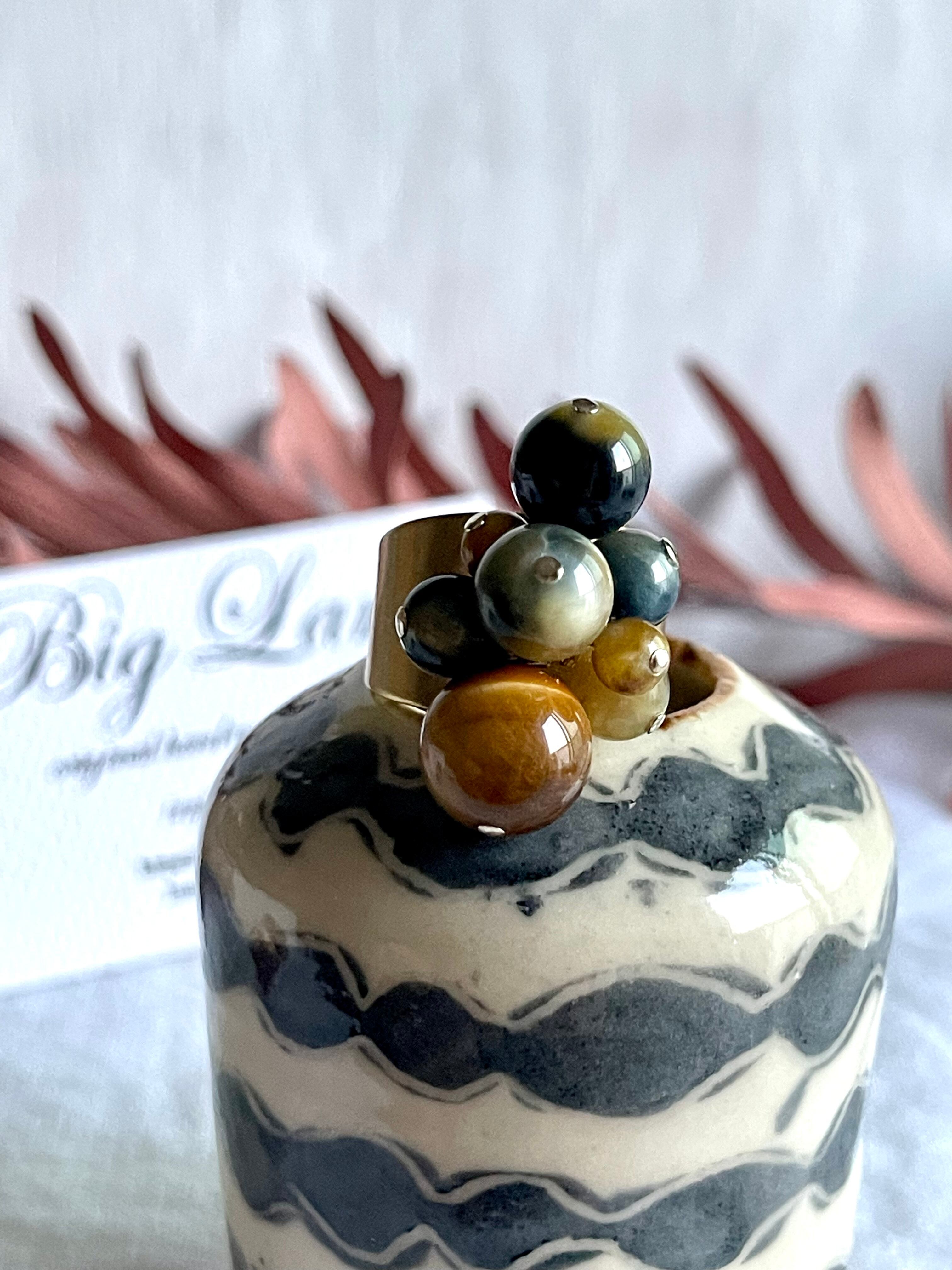 沢山の天然石がゴロゴロとデザイナーズの雰囲気で中指や人差し指に入れ、普段使いに主張し過ぎず肌馴染みも良いので出番が多くなりそう