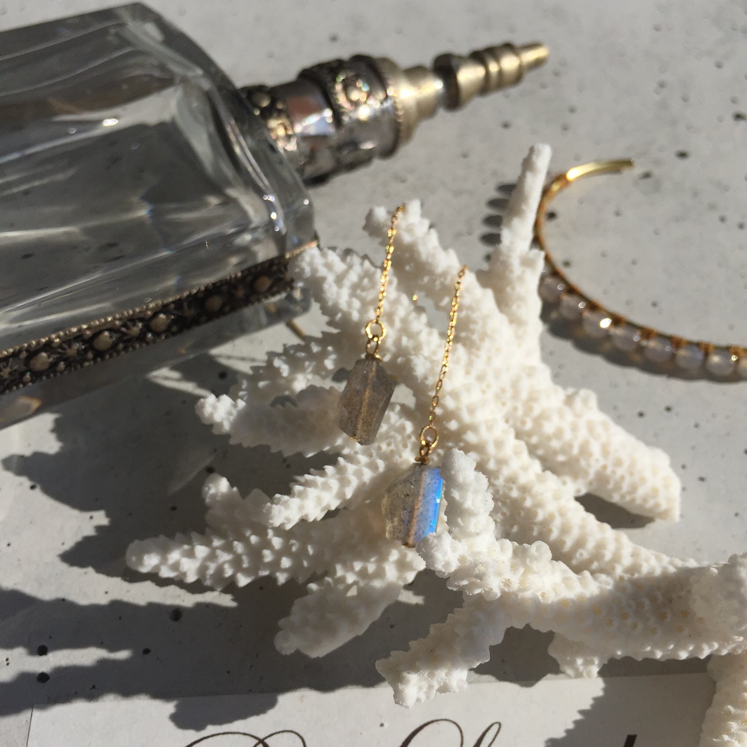 洗練されたカッティングのラブラドライトがキラキラと美しさを放ち、ワンランク上の雰囲気を醸し出すピアスです✨