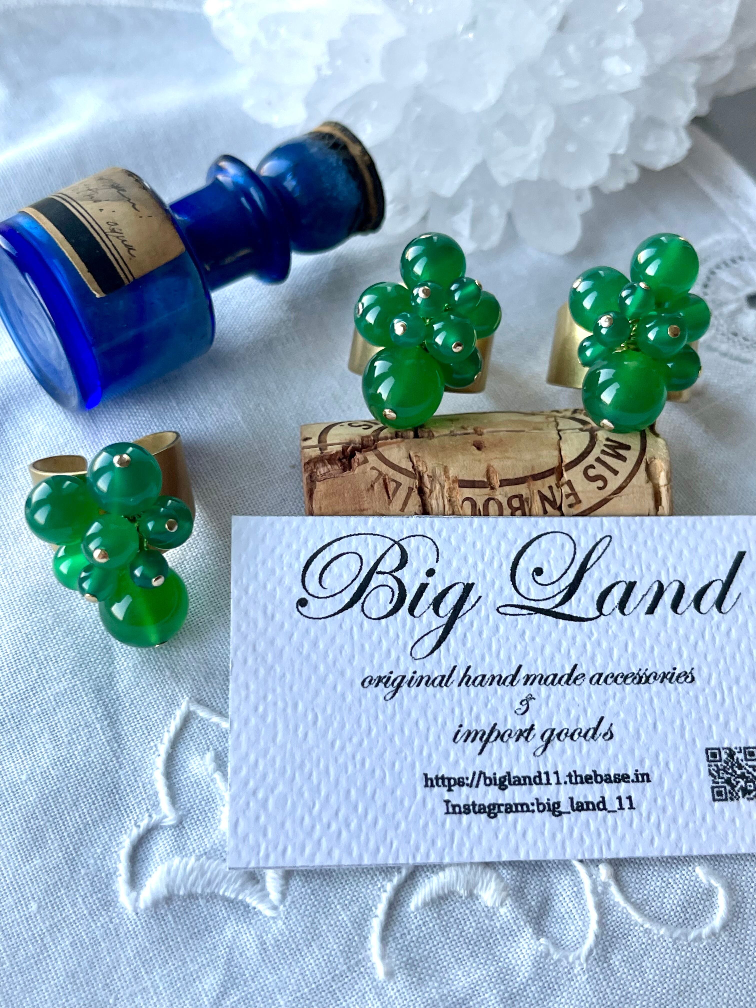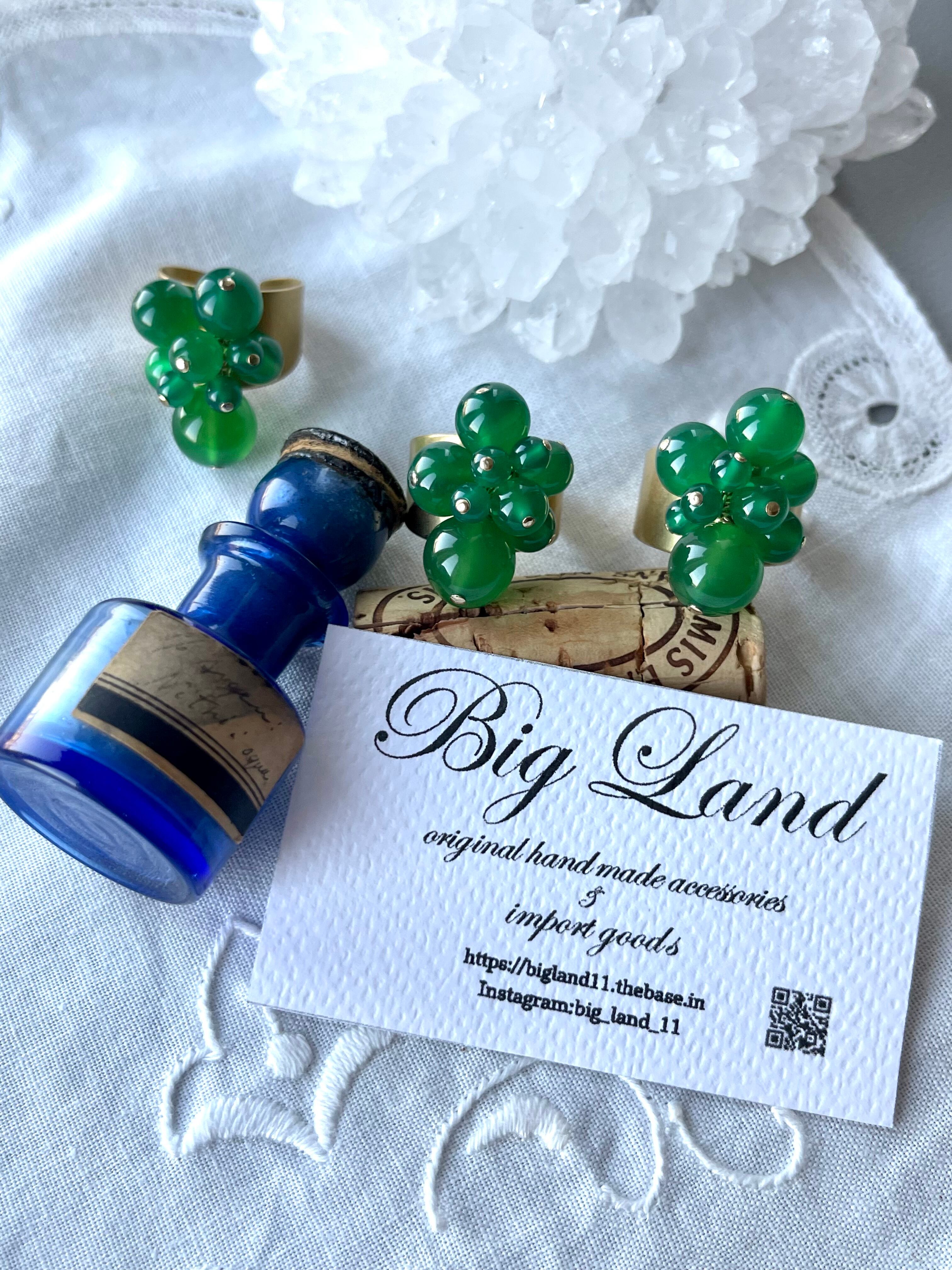 レトロっぽい色のグリーンアゲートと真鍮の組み合わせが素敵で、古着のワンピとかに合わせたくなる雰囲気!!