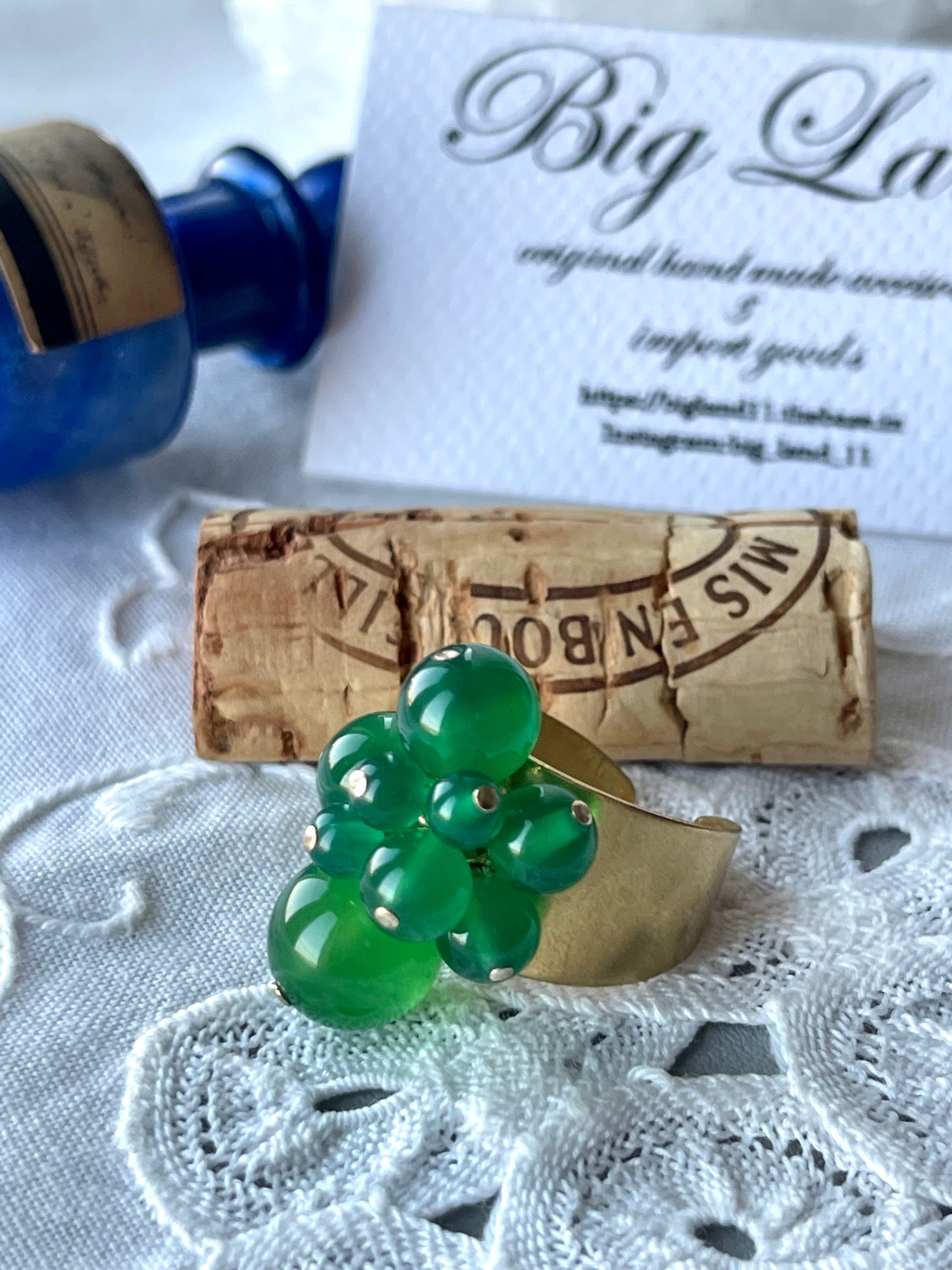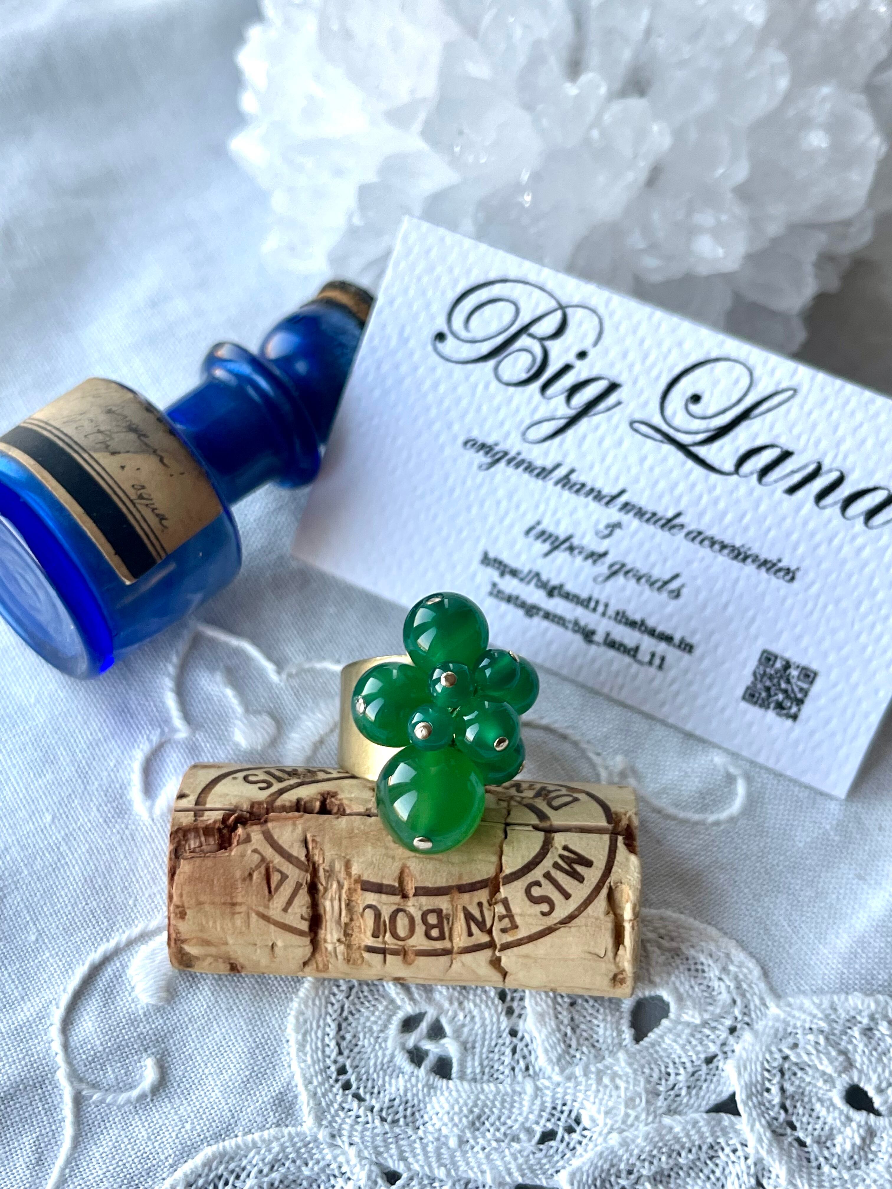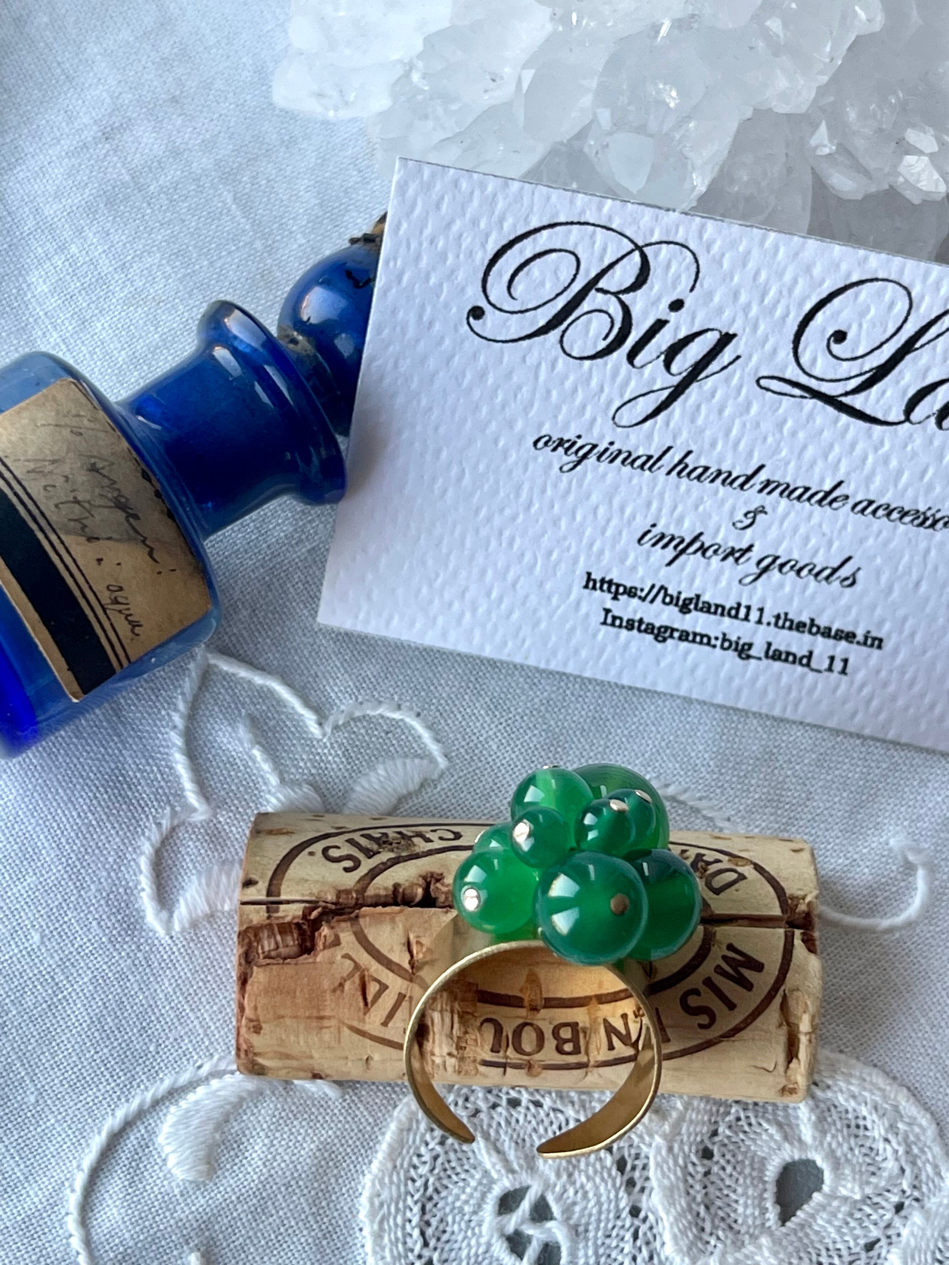レトロっぽい色のグリーンアゲートと真鍮の組み合わせが素敵で、古着のワンピとかに合わせたくなる雰囲気!!
