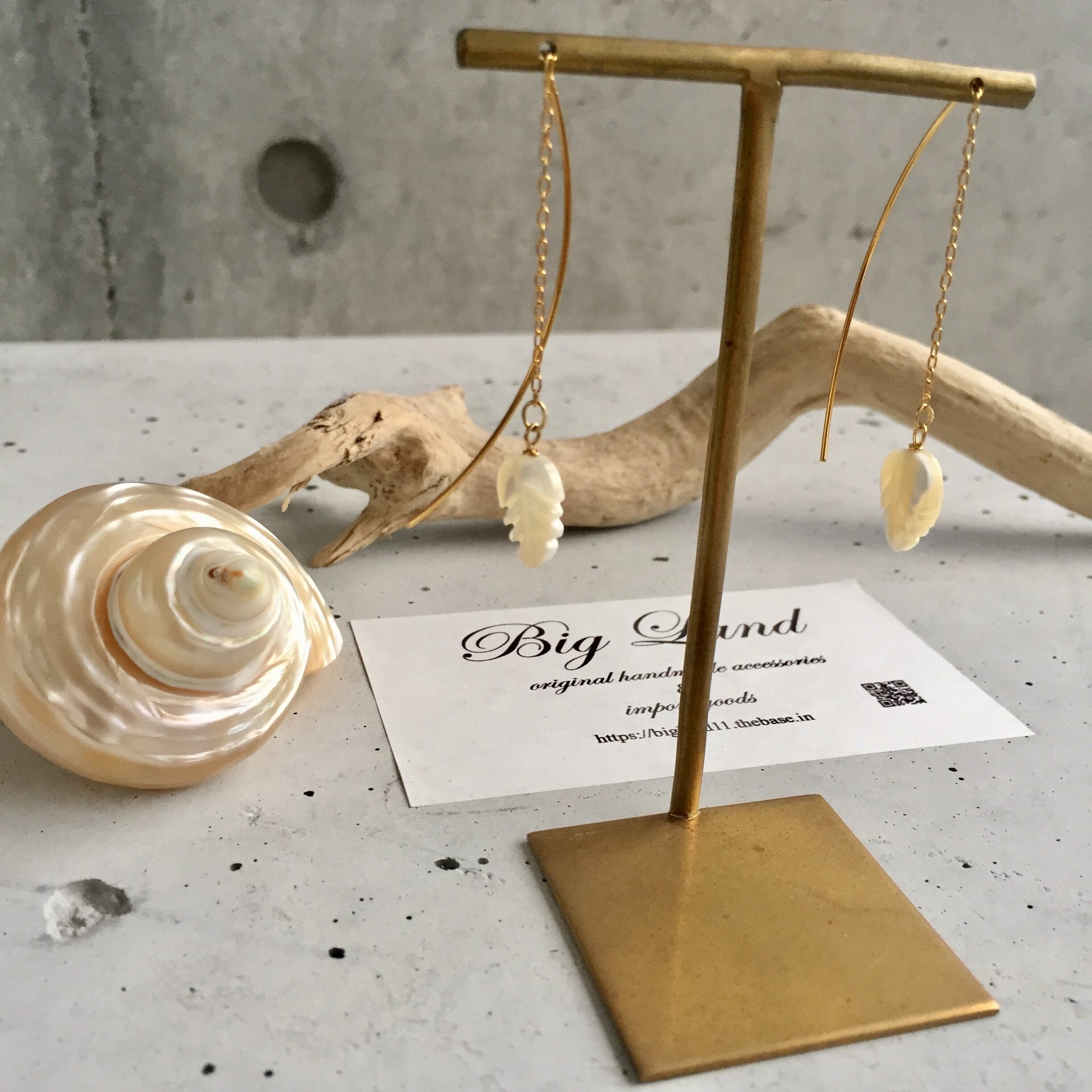 白蝶貝の美しい輝きとリーフのデザインが、耳元で涼しく揺れてお顔周りを華やかにします✨