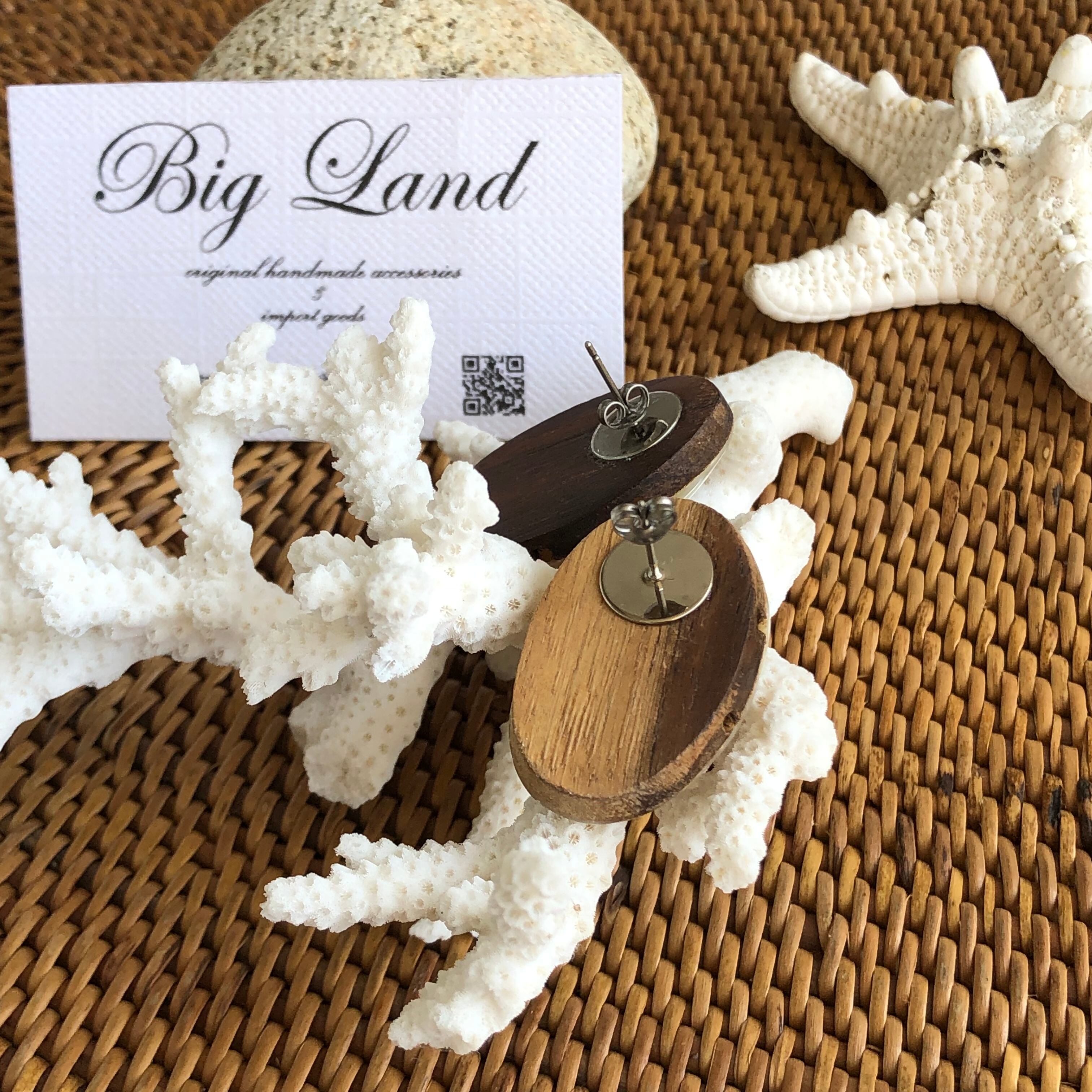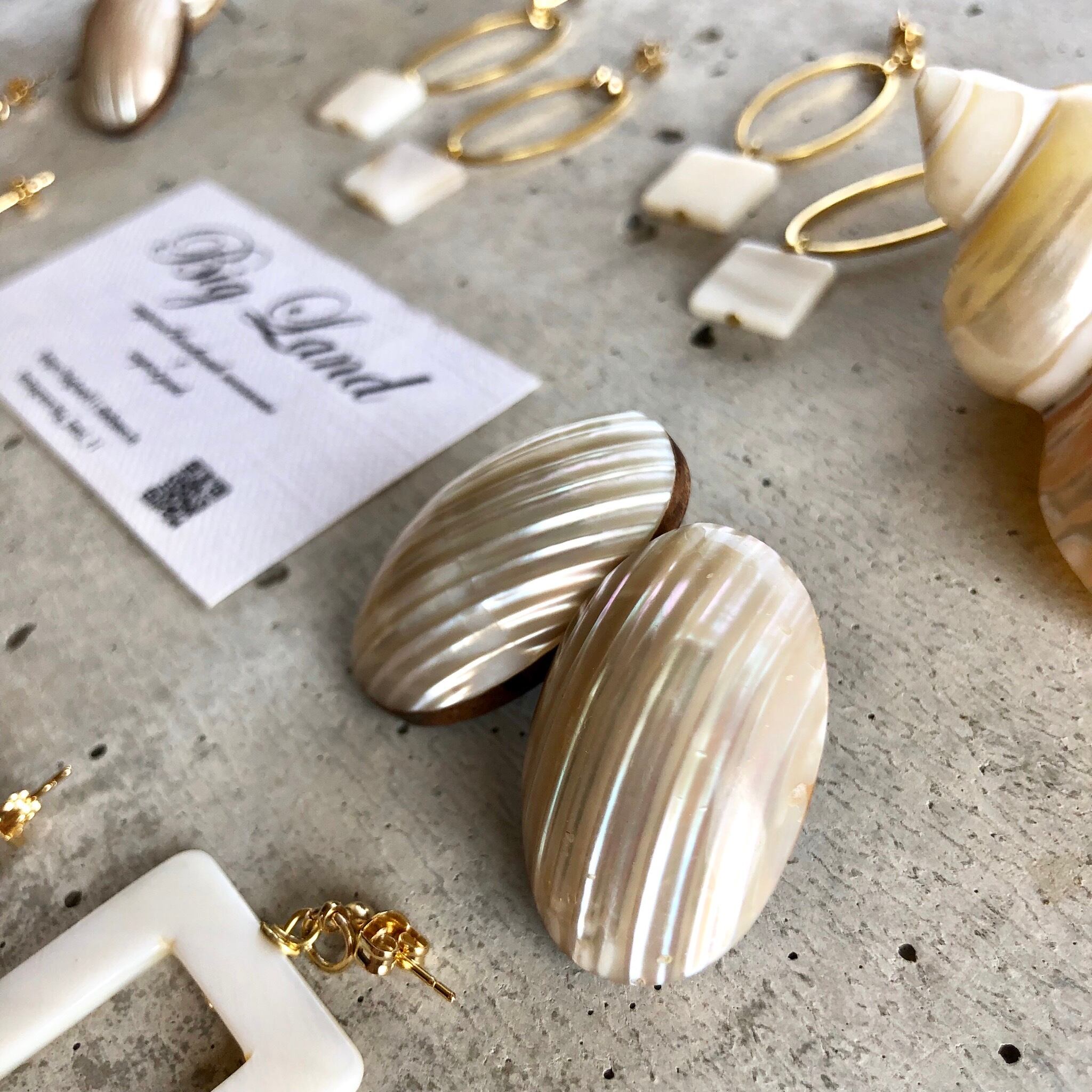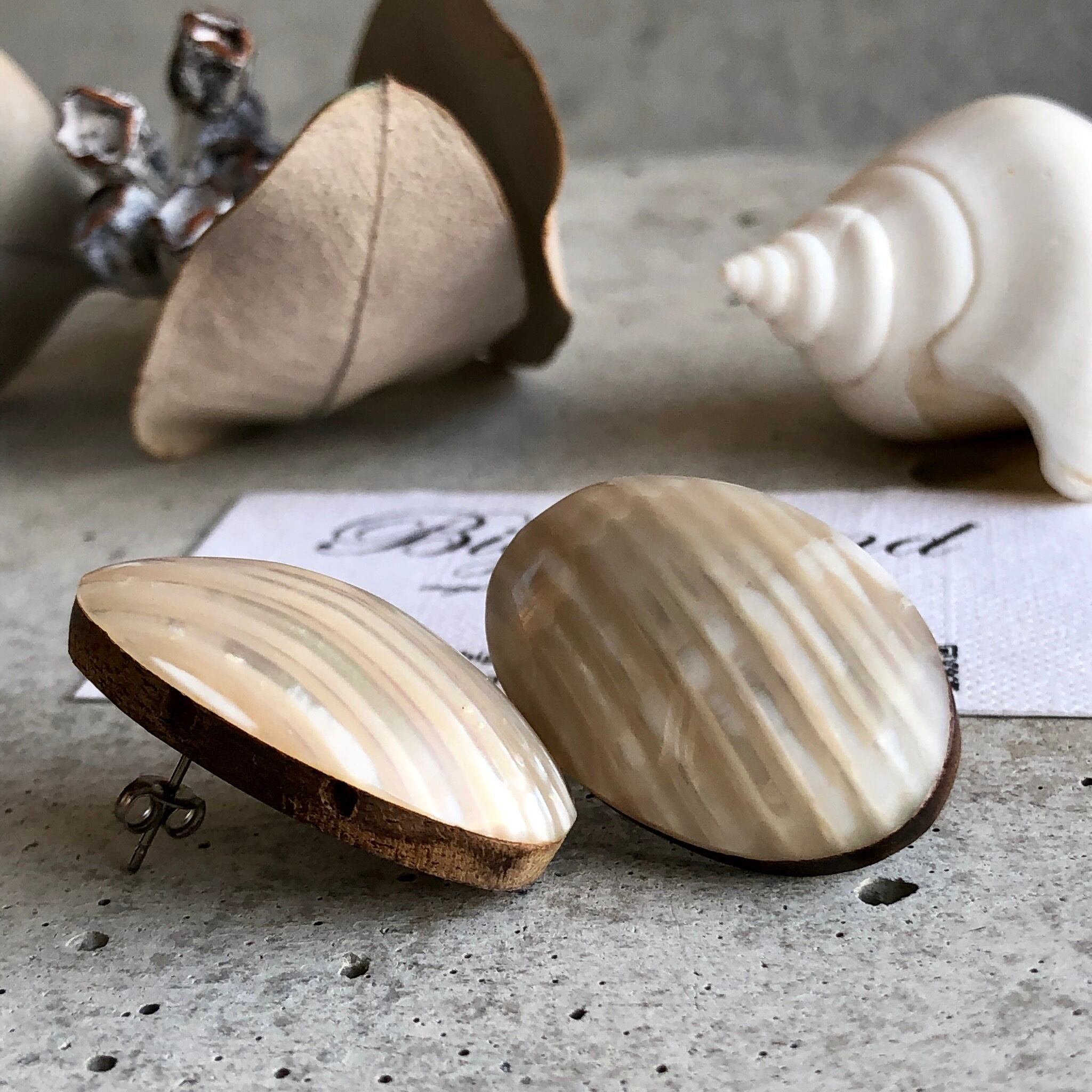 シェルとウッドの楕円形ピアス