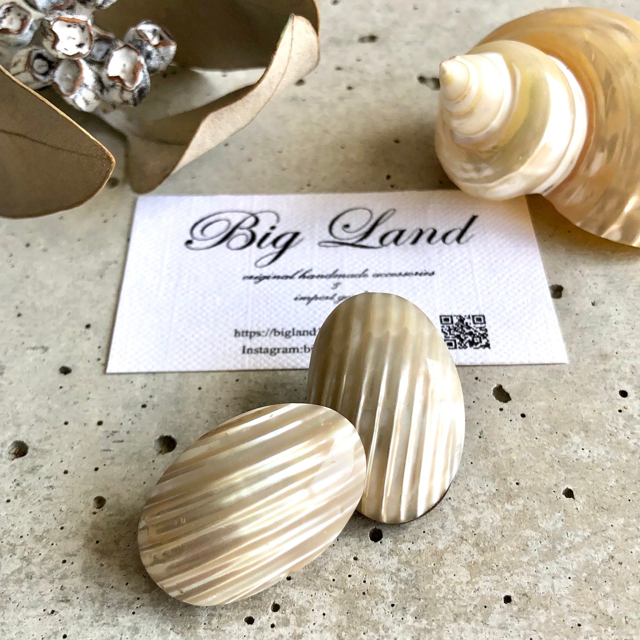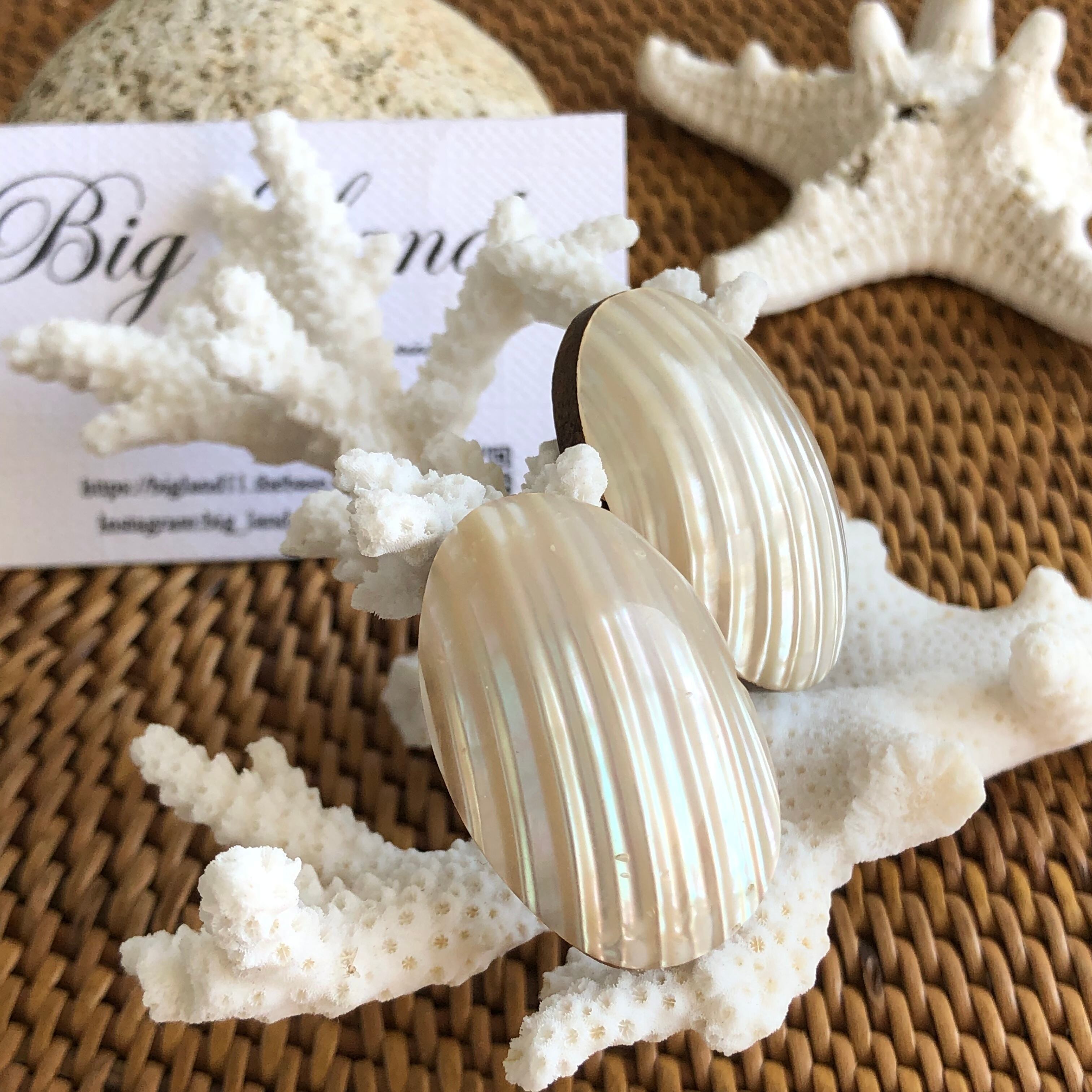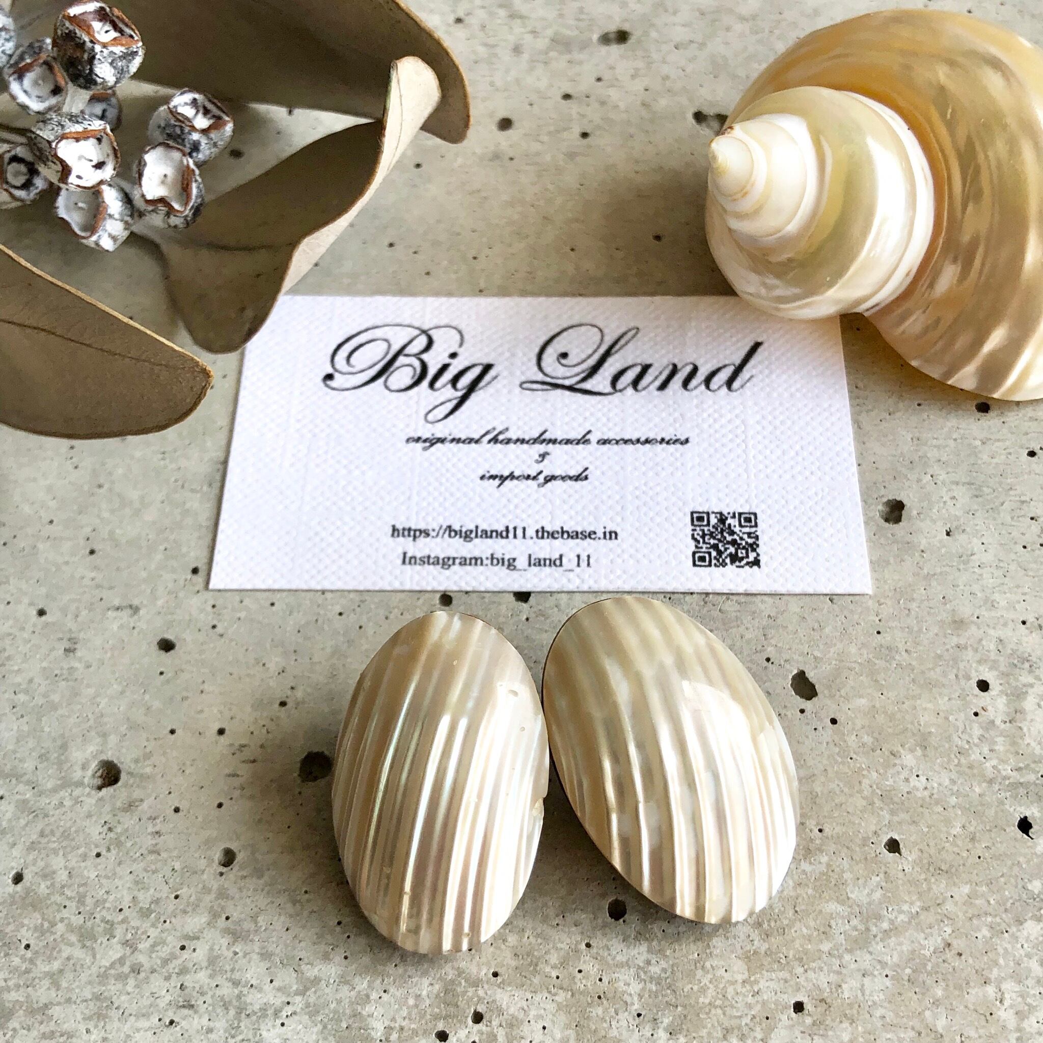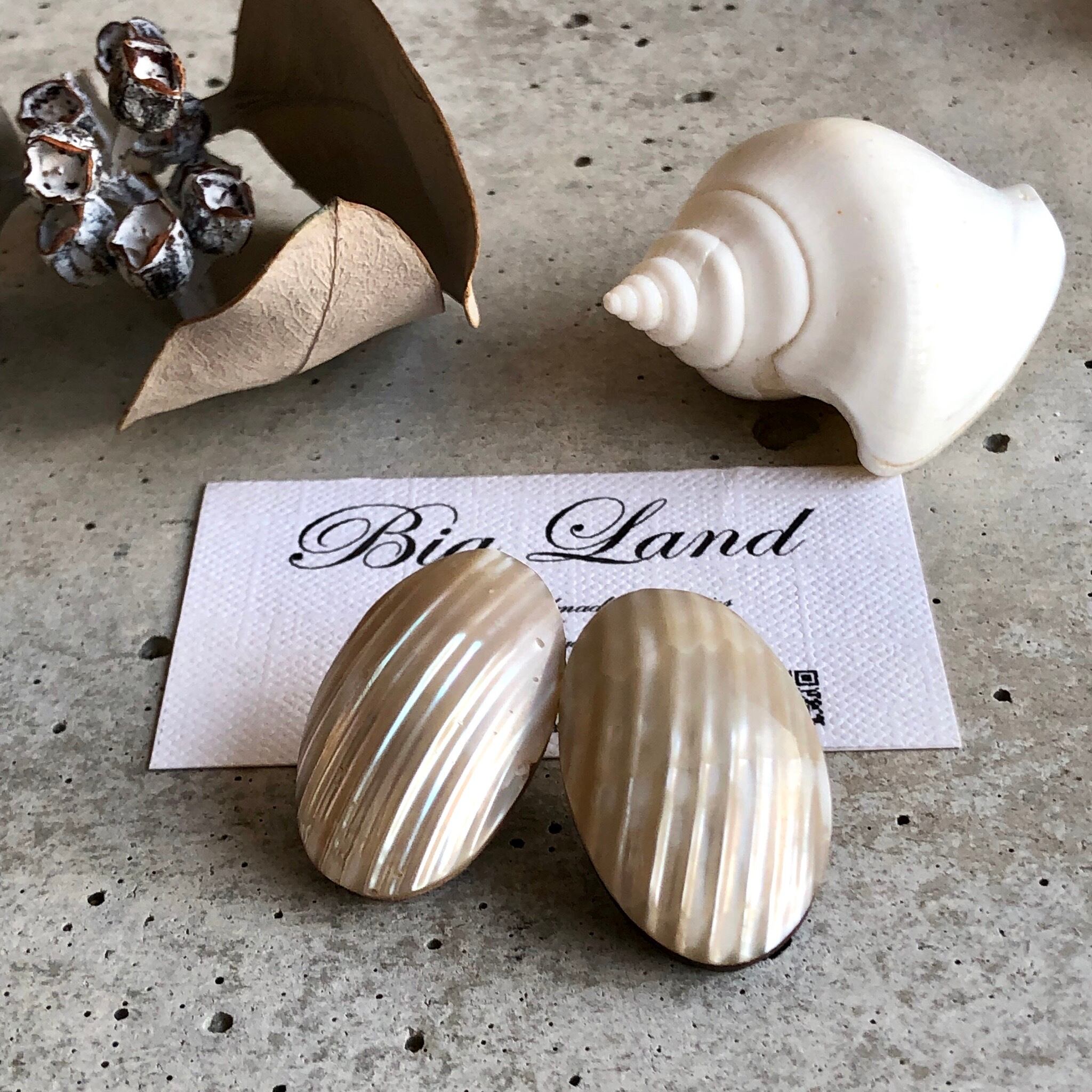 耳元にぴったりくっつきシェルの輝きが大変美しく、シンプルなお洋服から個性的なお洋服にと幅広く使えると思います✨