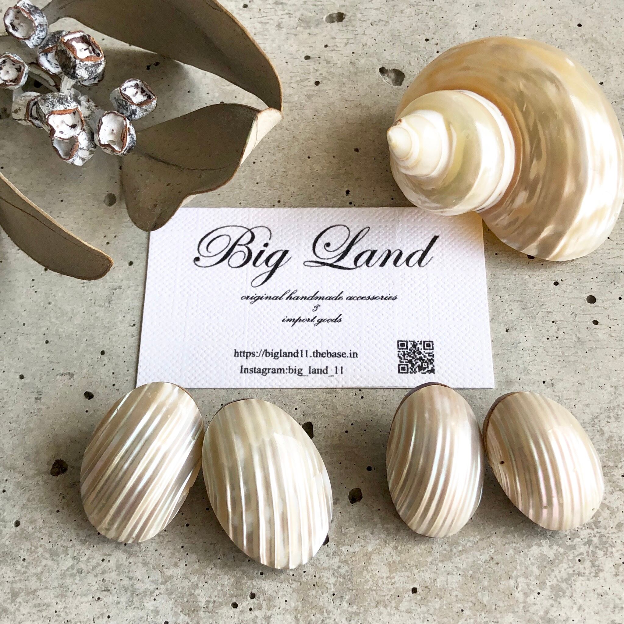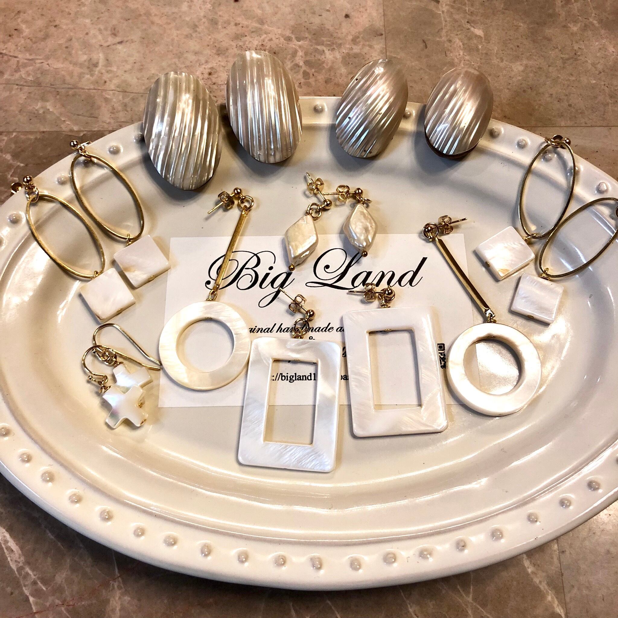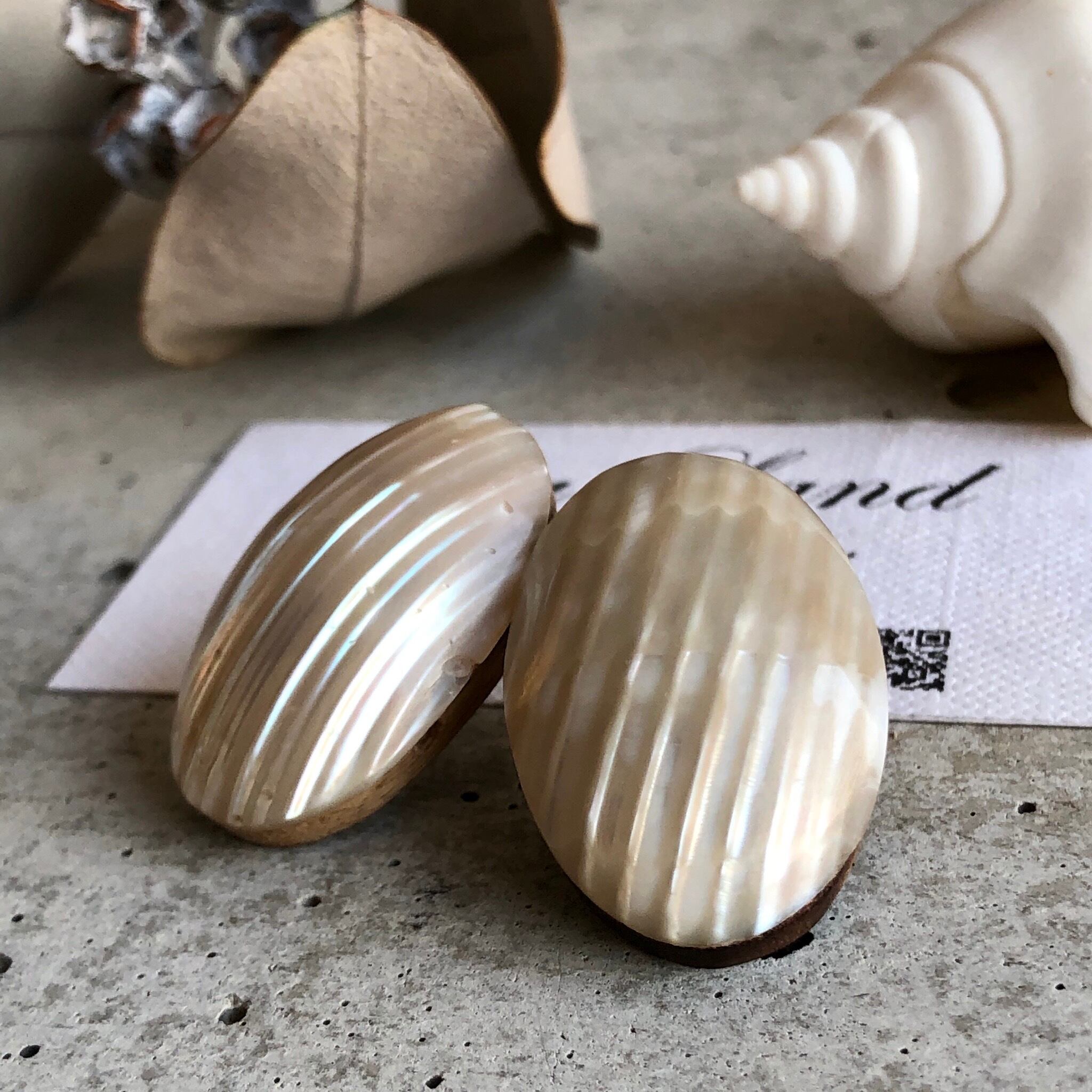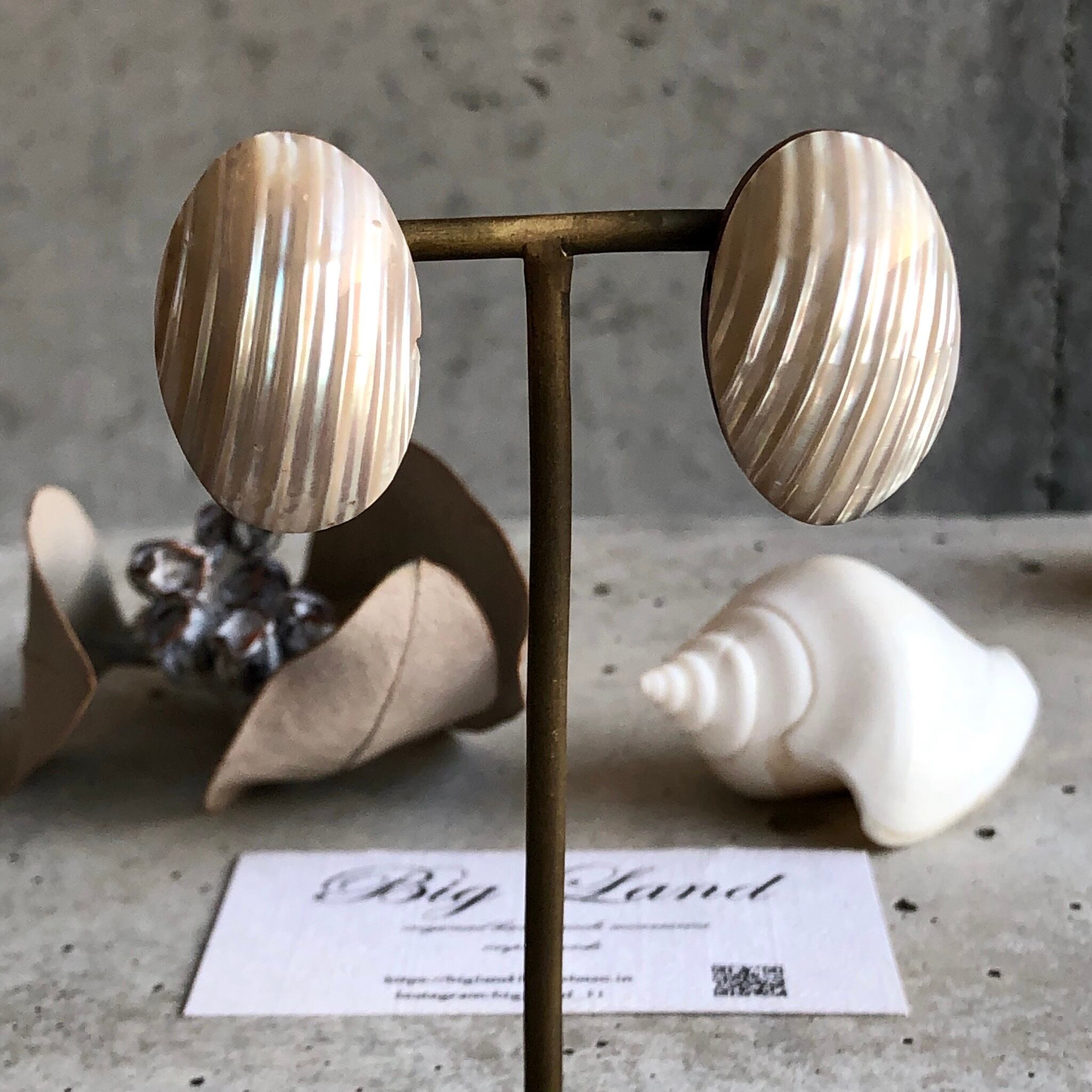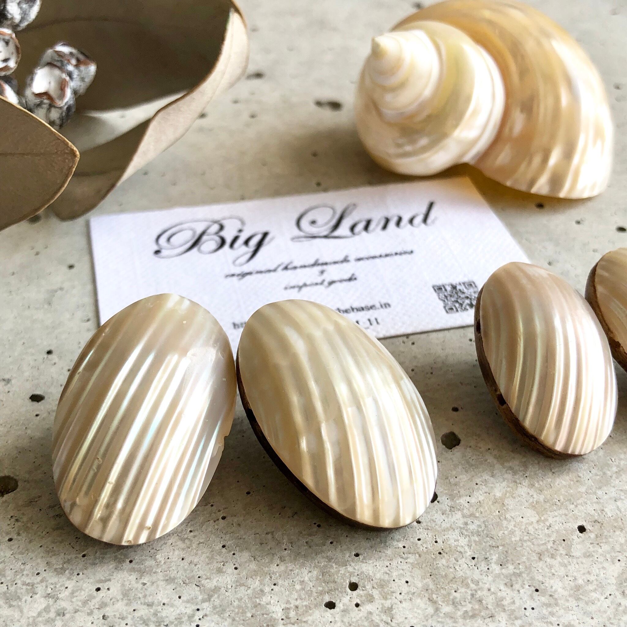 耳元にぴったりくっつきシェルの輝きが大変美しく、シンプルなお洋服から個性的なお洋服にと幅広く使えると思います✨