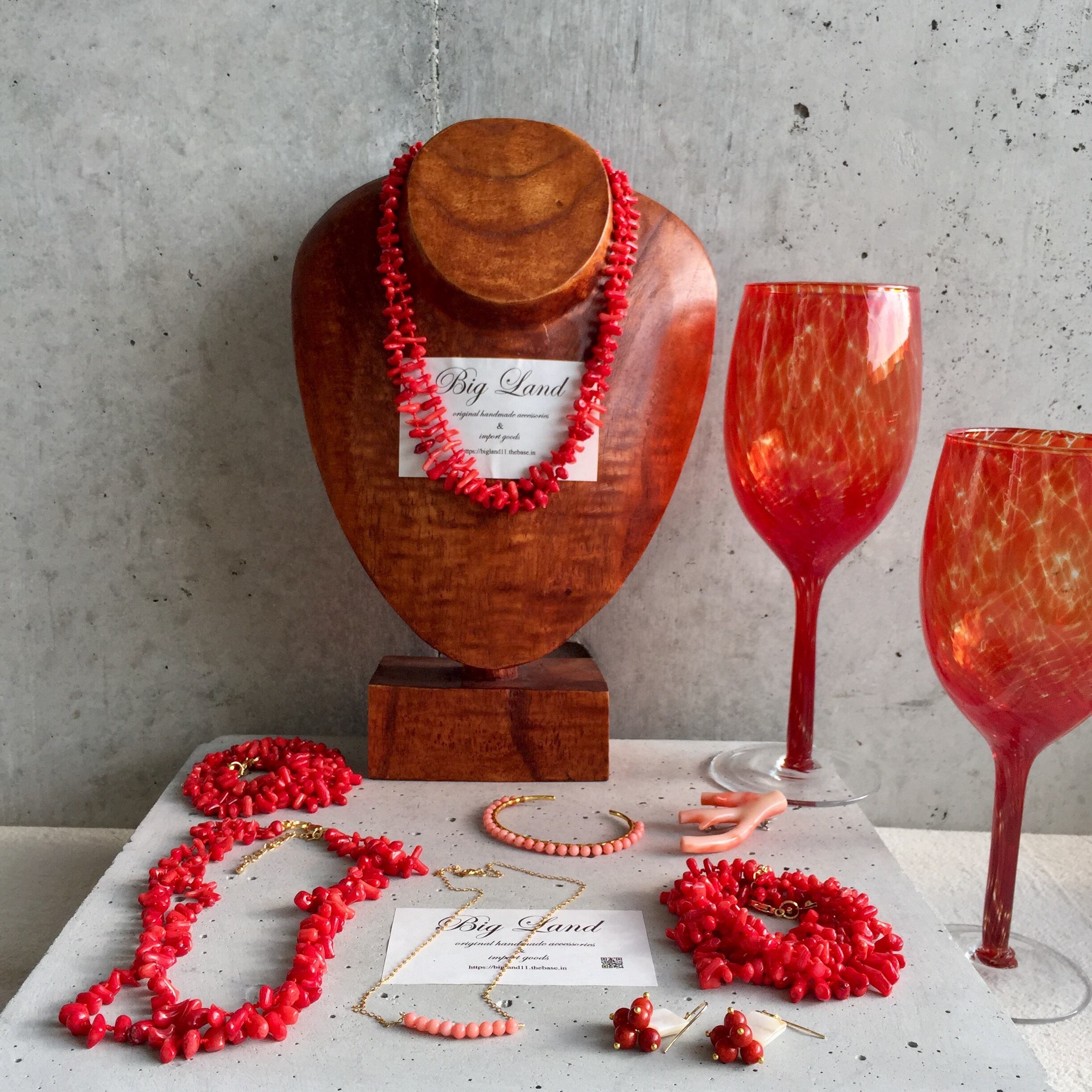 真っ赤な珊瑚をしっかり、ひと結びひと結びすることにより珊瑚のカタチをより綺麗に見せる事ができる手間をかけたネックレス✨