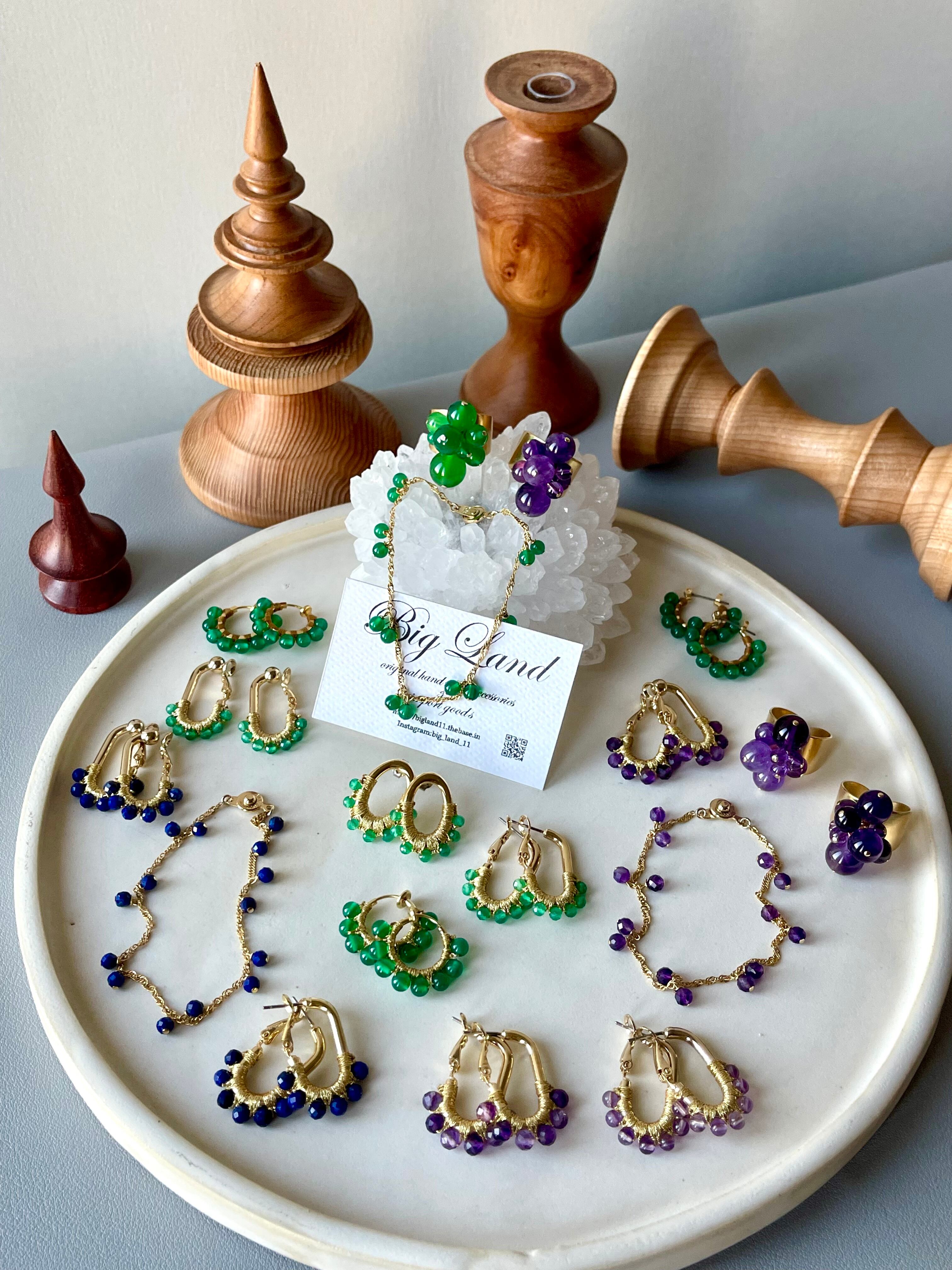 華やかなグリーンオニキスが何処かエキゾチックで…これから暗いお洋服が多くなる季節に差し色になりお顔周りがパッと明るくなり垢抜けると思います。
