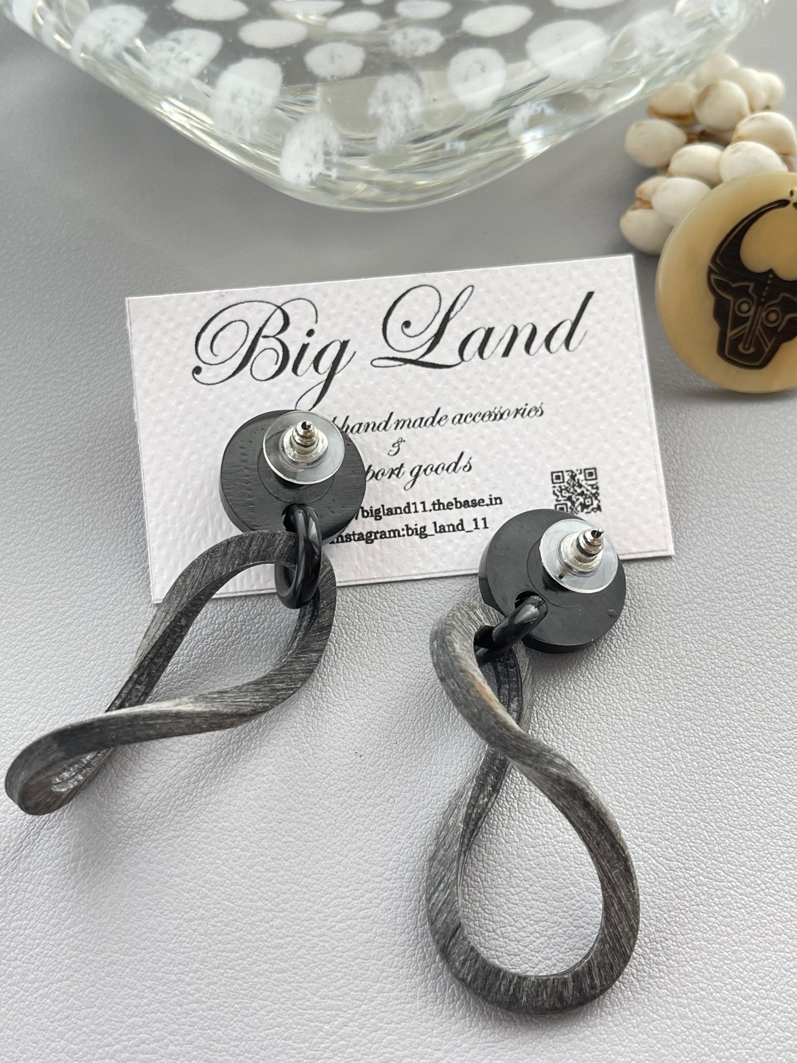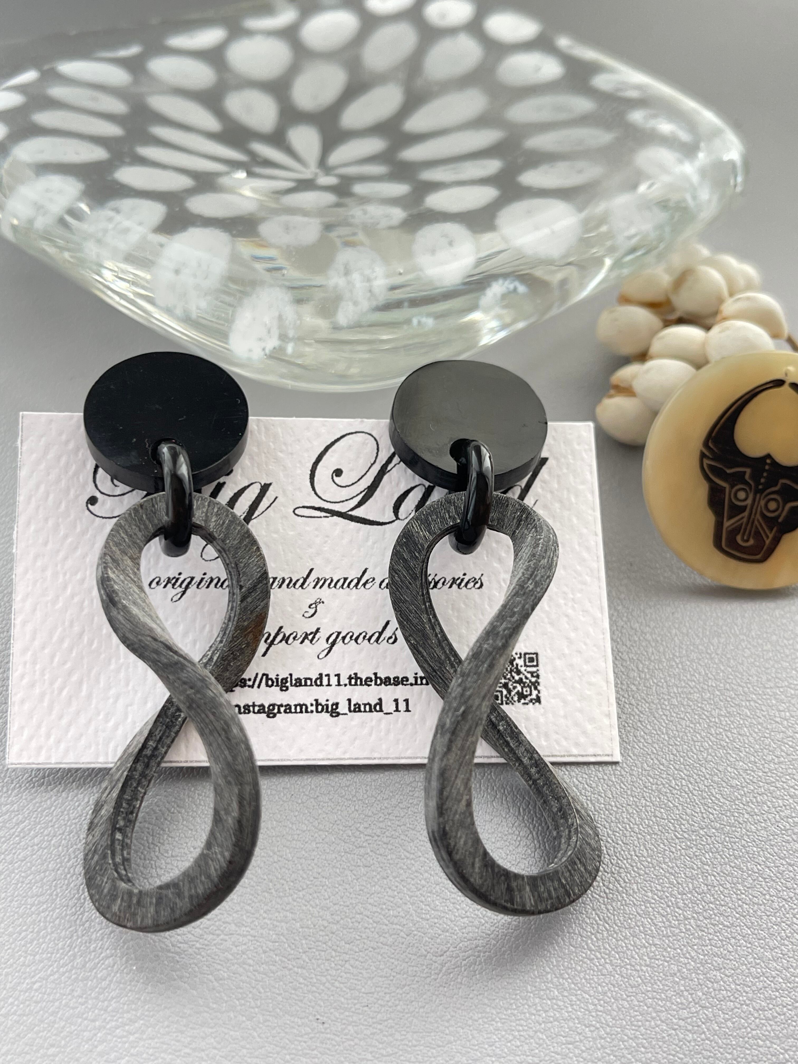 上品な色合いと無限を彷彿するようなモチーフがなんとも言えないデザインで、大ぶりなのに大変軽いのが水牛アクセサリーの特徴で小顔効果抜群ですよー✨