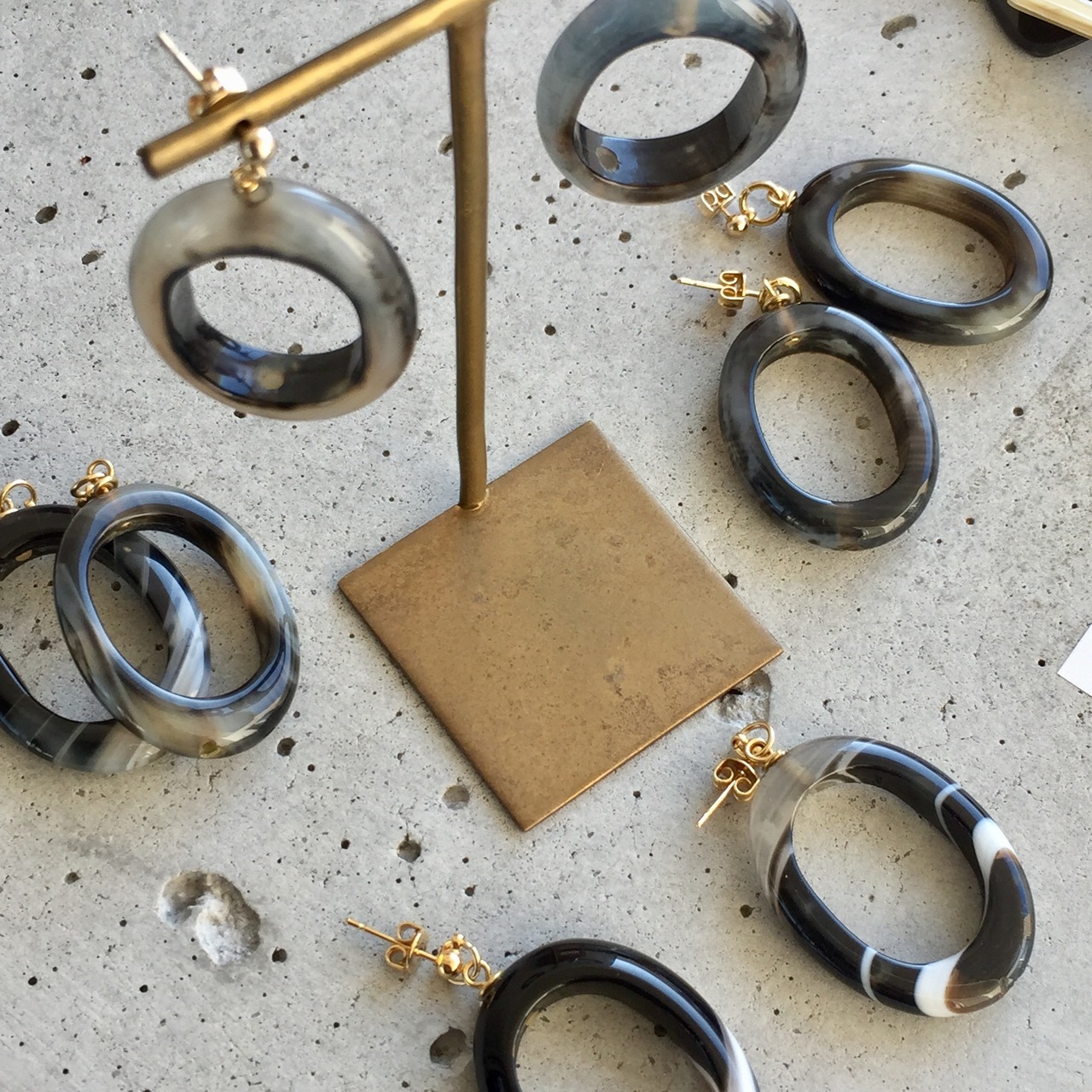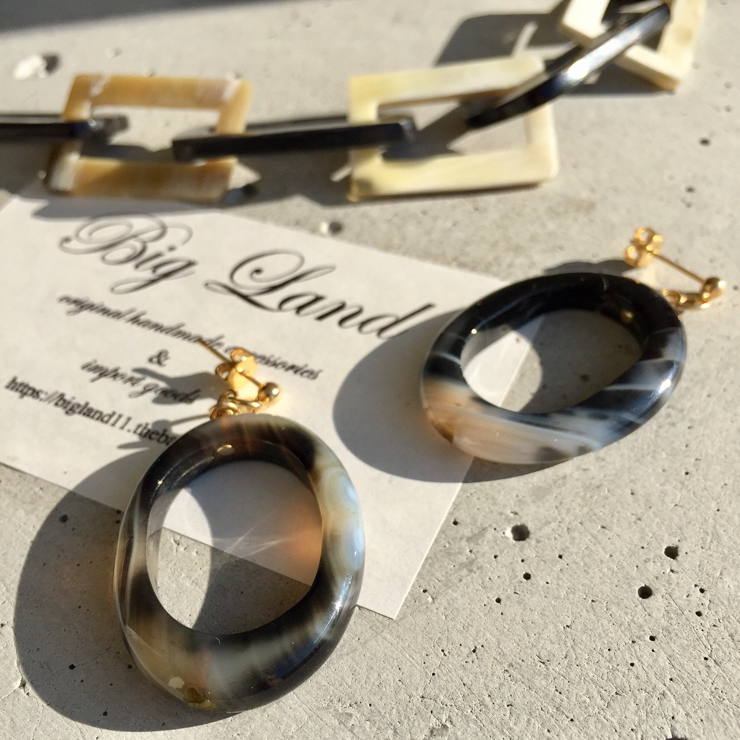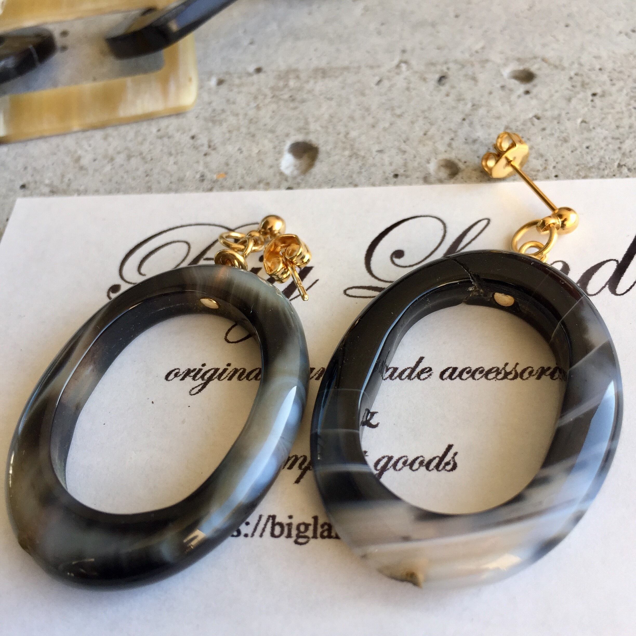 モダンな雰囲気でカッコ良い天然石のメノウピアス✨