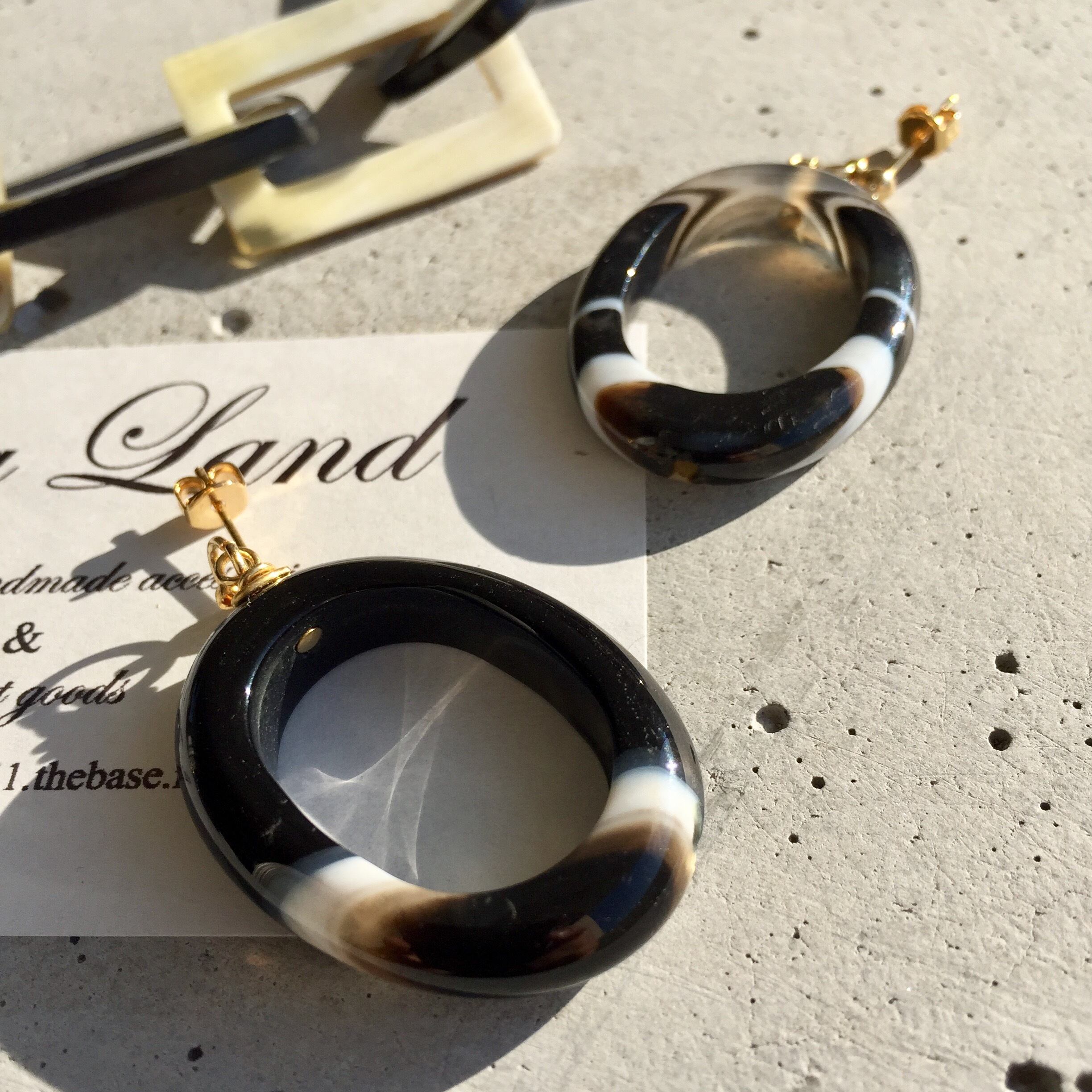 モダンな雰囲気でカッコ良い天然石のメノウピアス✨