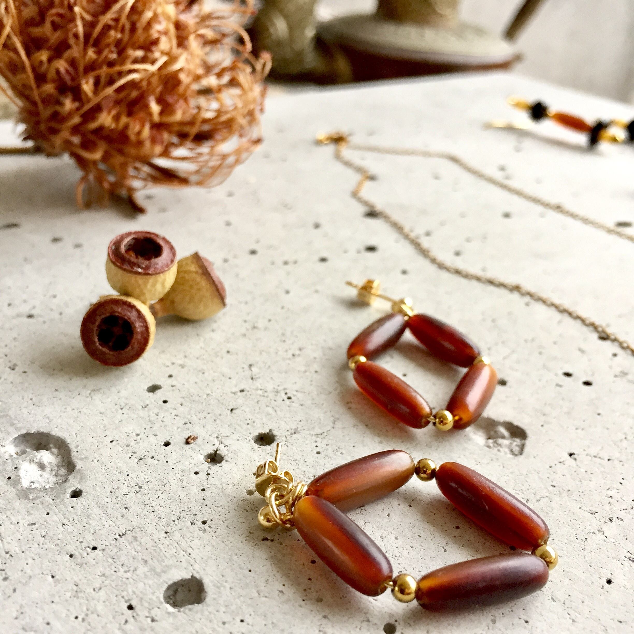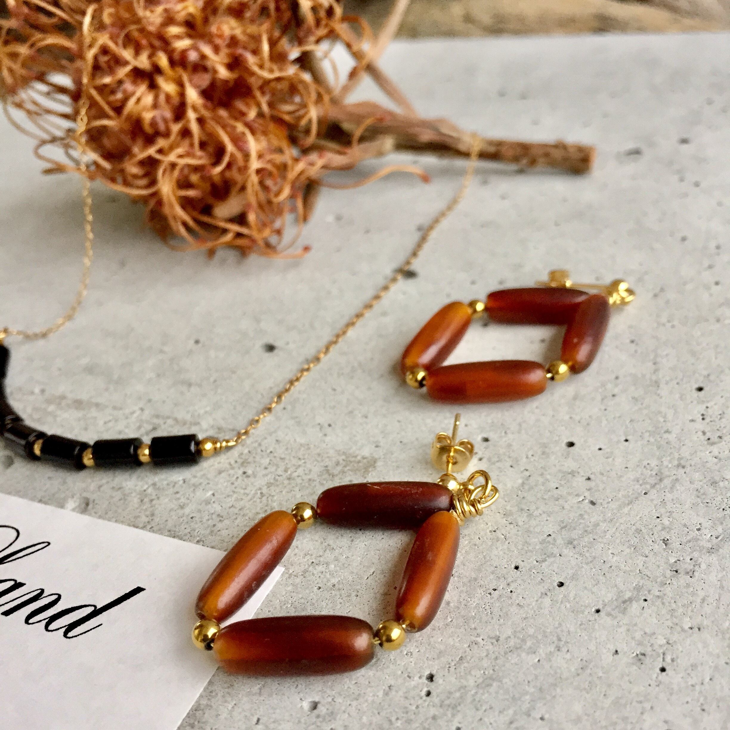 ナチュラルな水牛角とヘマタイトの組み合わせがこなれ感を出して秋に向けていち早く取り入れてみてはいかがでしょうか