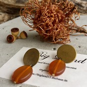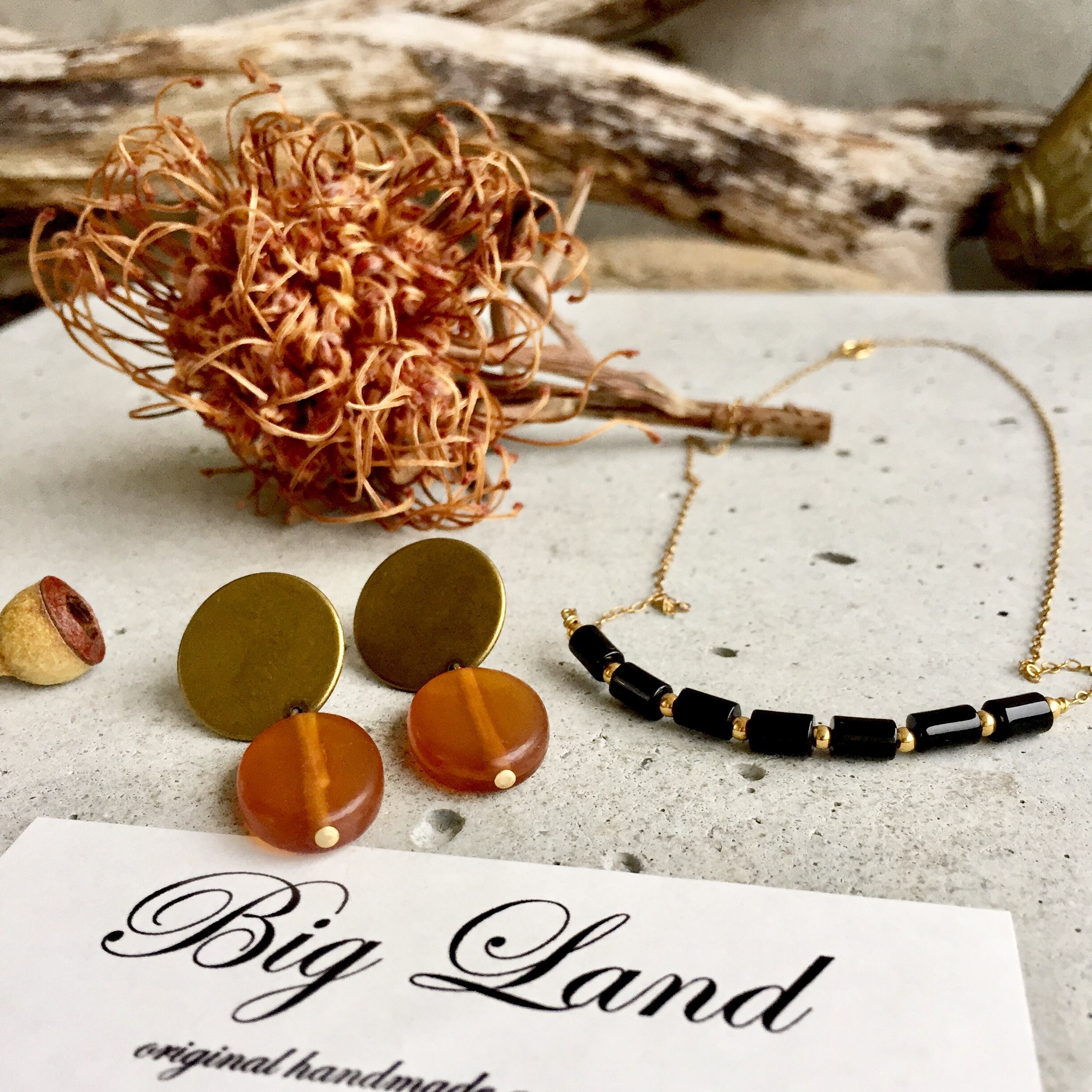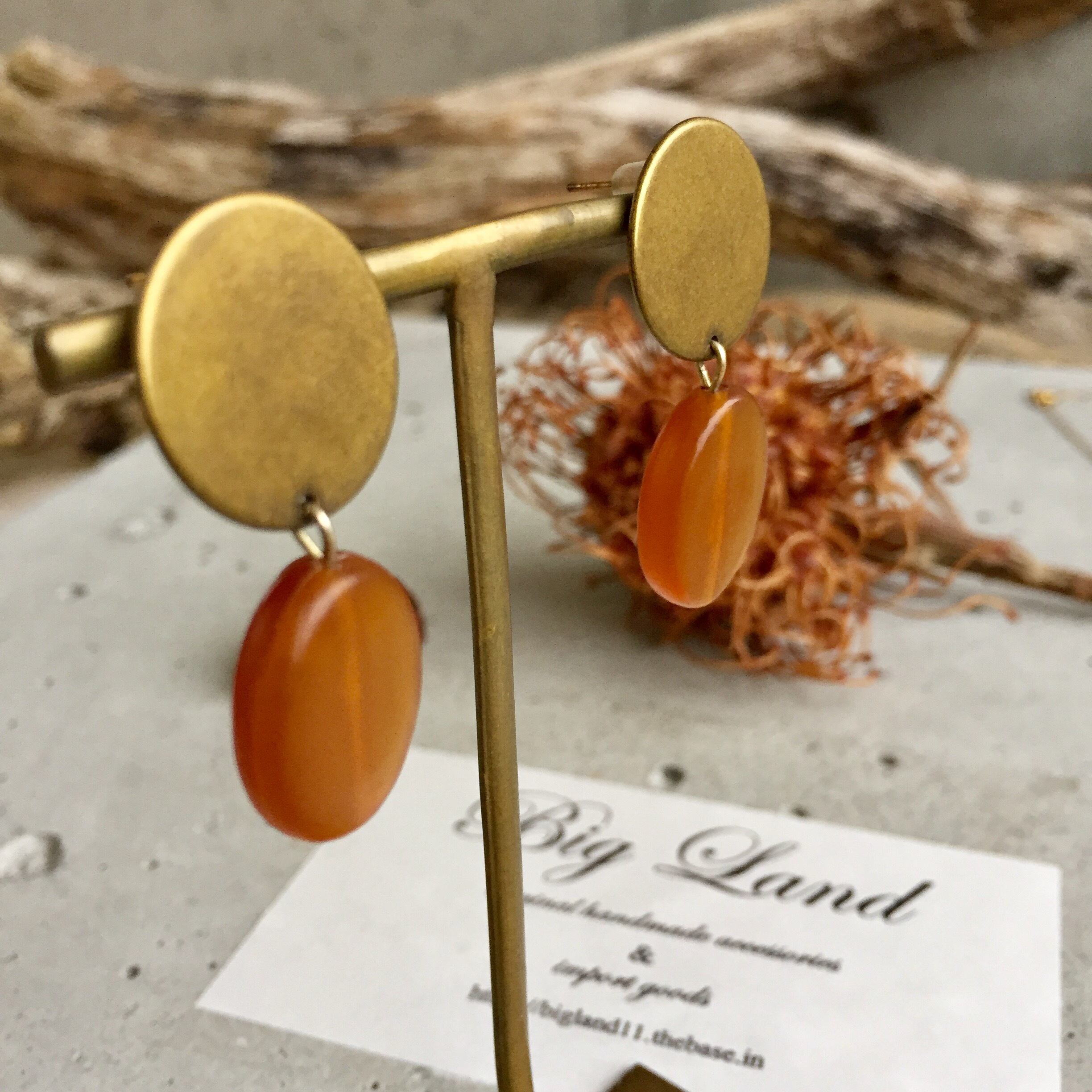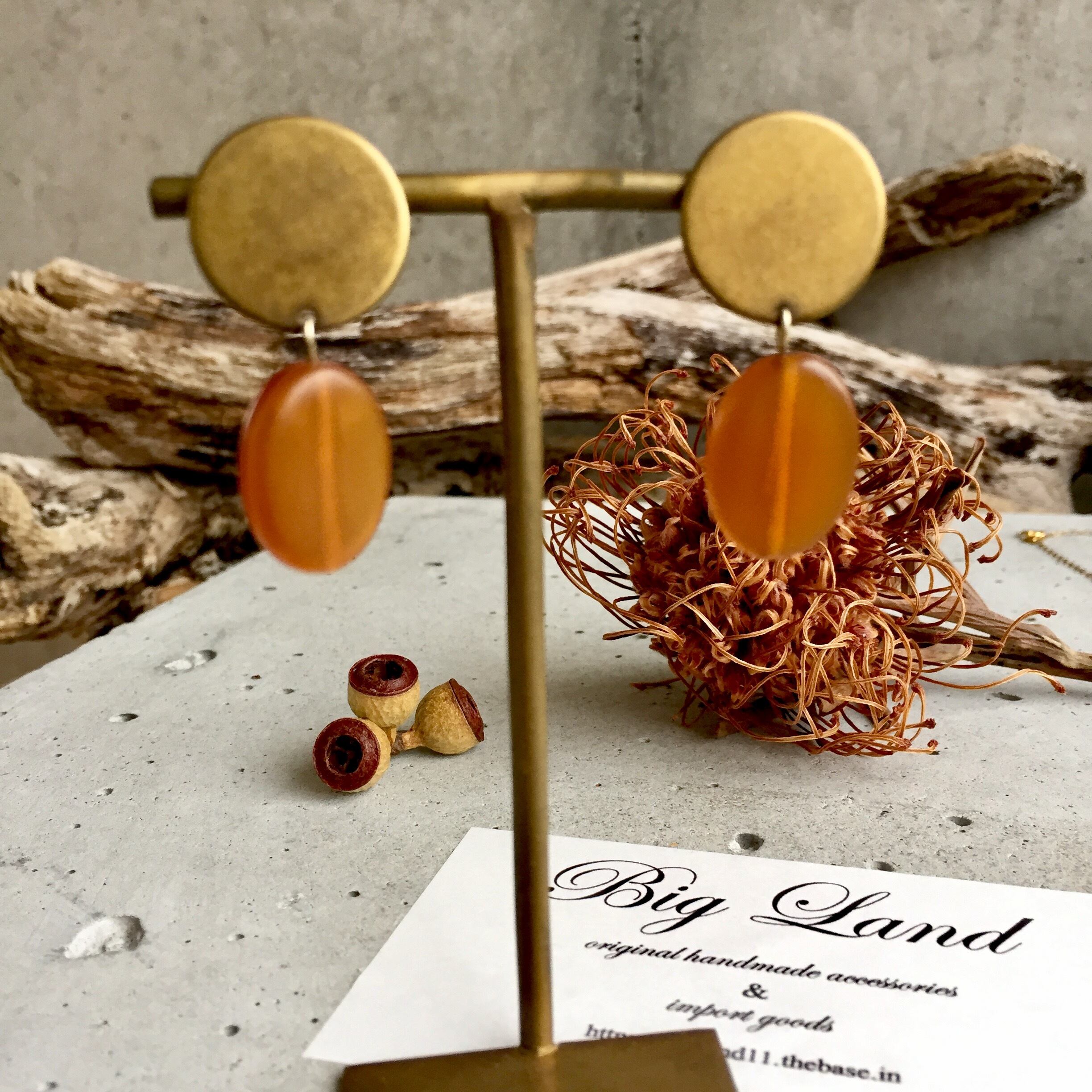 平べったい水牛角をアンティーク風に耳元にぺたんとしたピアスに仕上げてみました✨