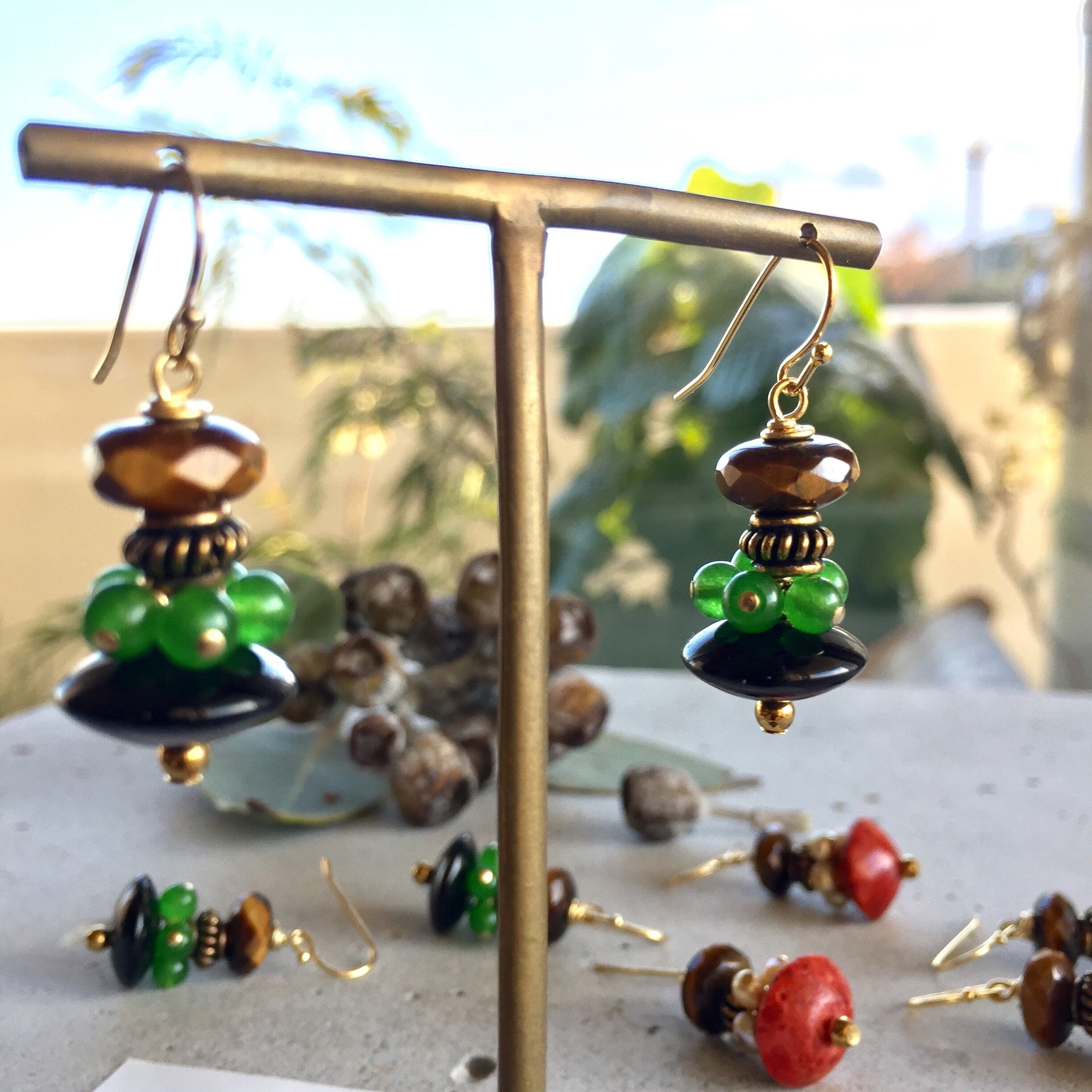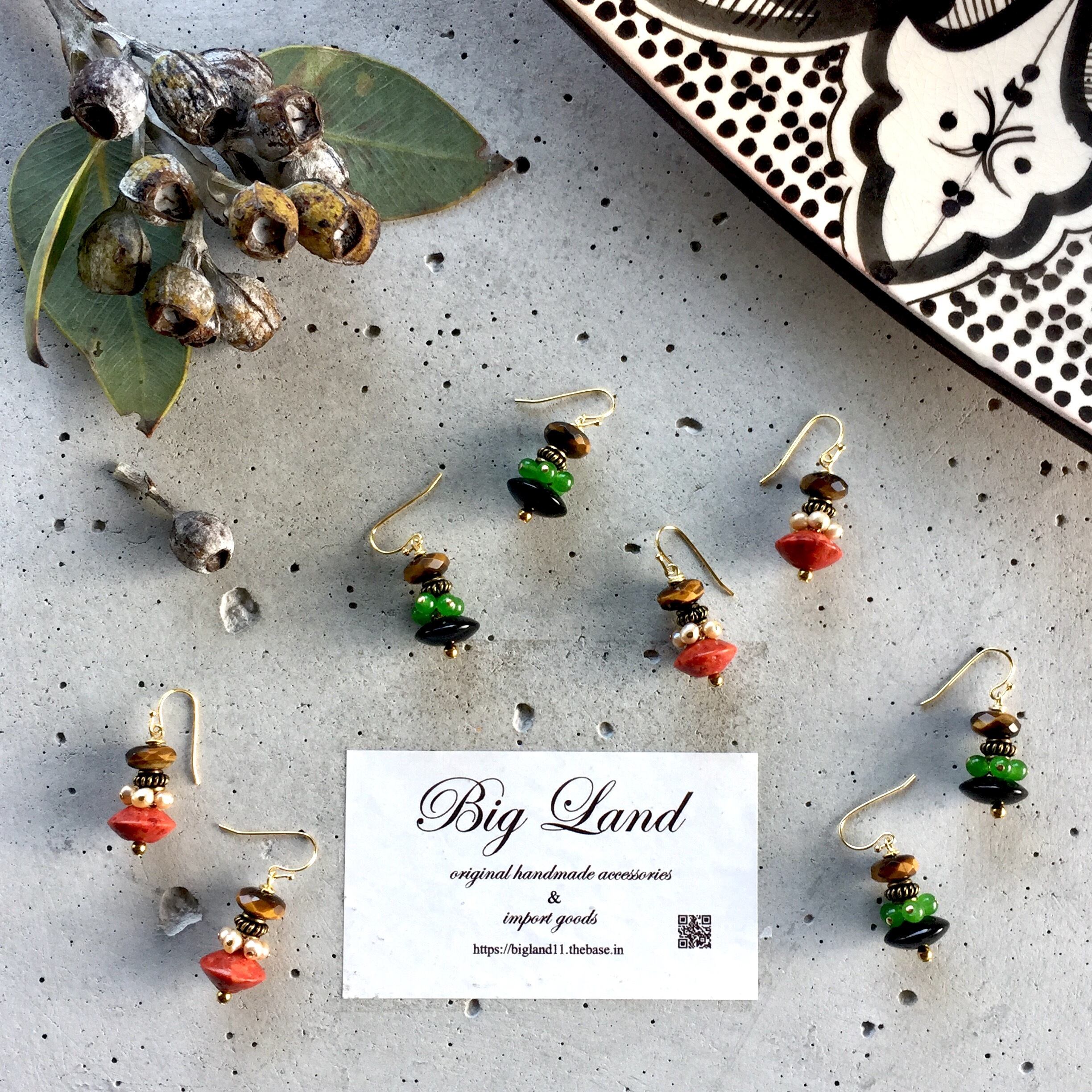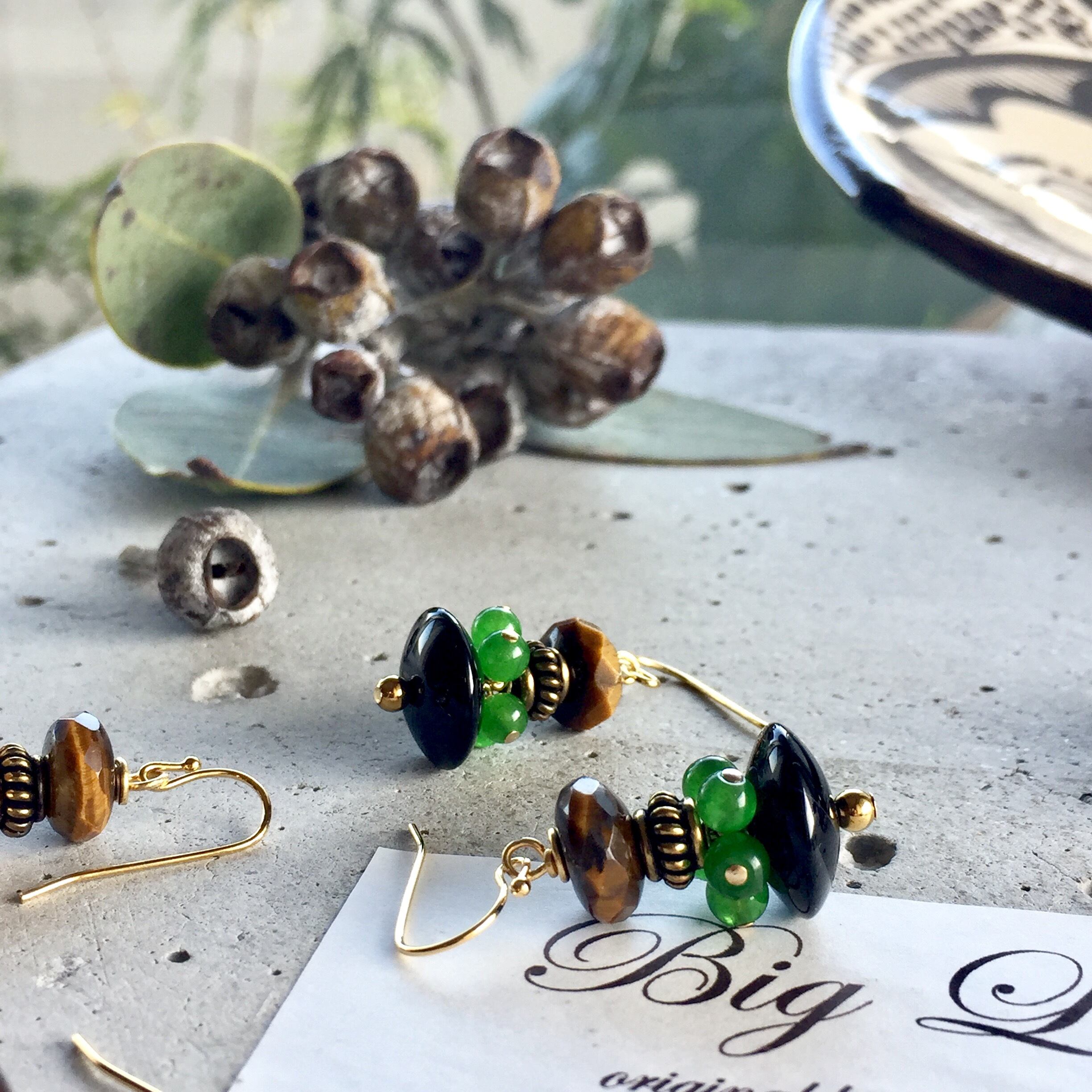 天然石のオニキス.タイガーアイ.ヘマタイト.カルセドニーを使いオリエンタルな雰囲気の個性的なデザインに仕上げた私のイチオシなデザインです‼️