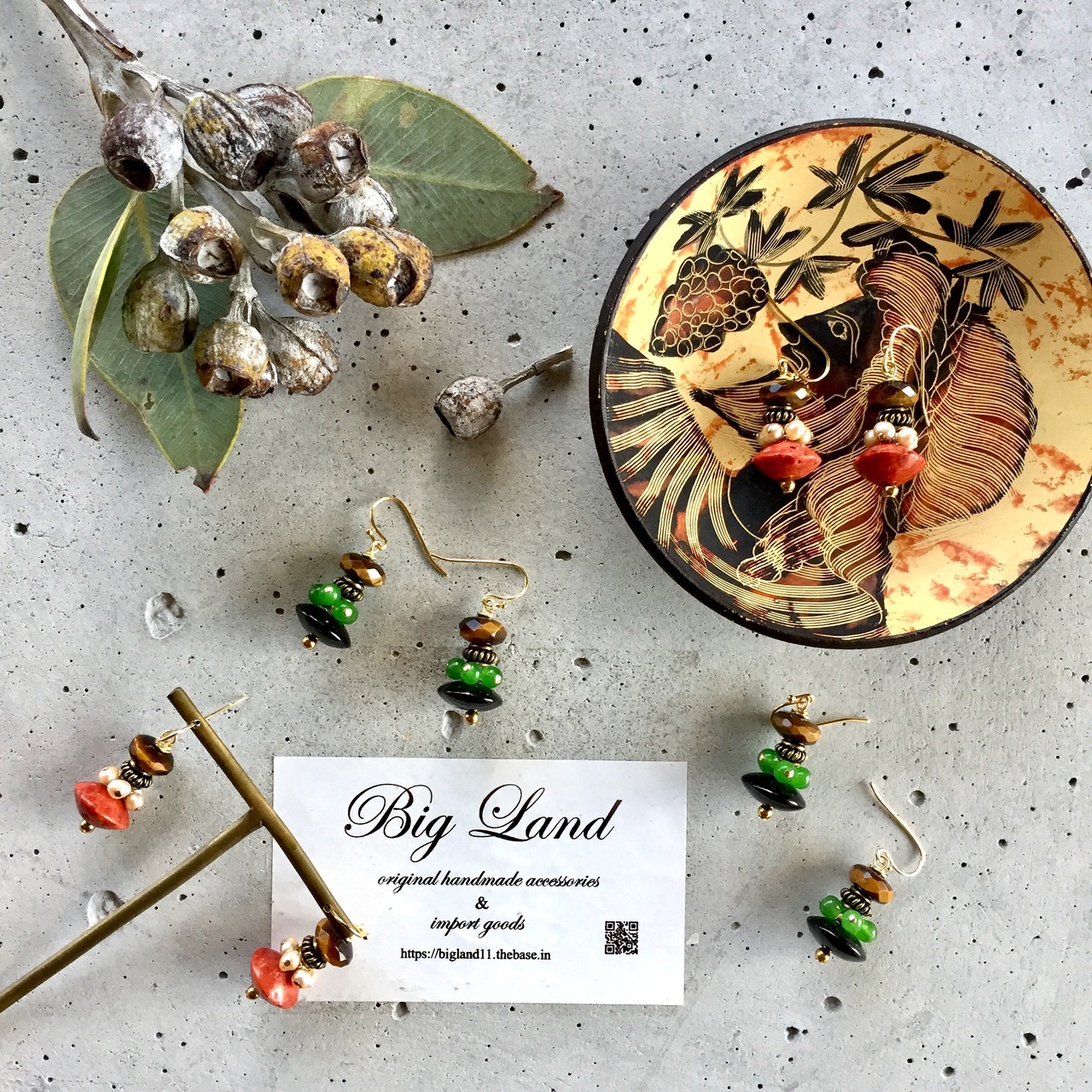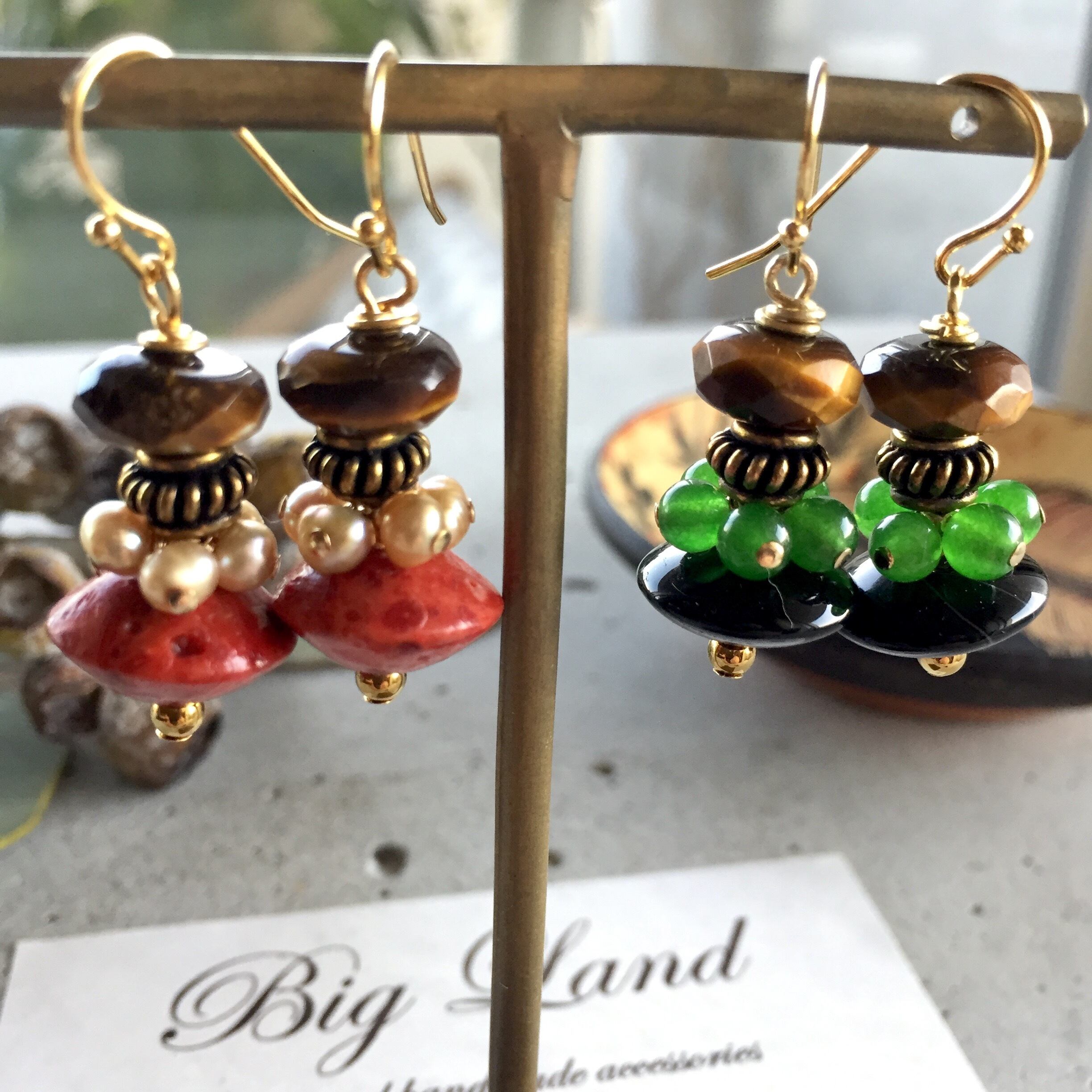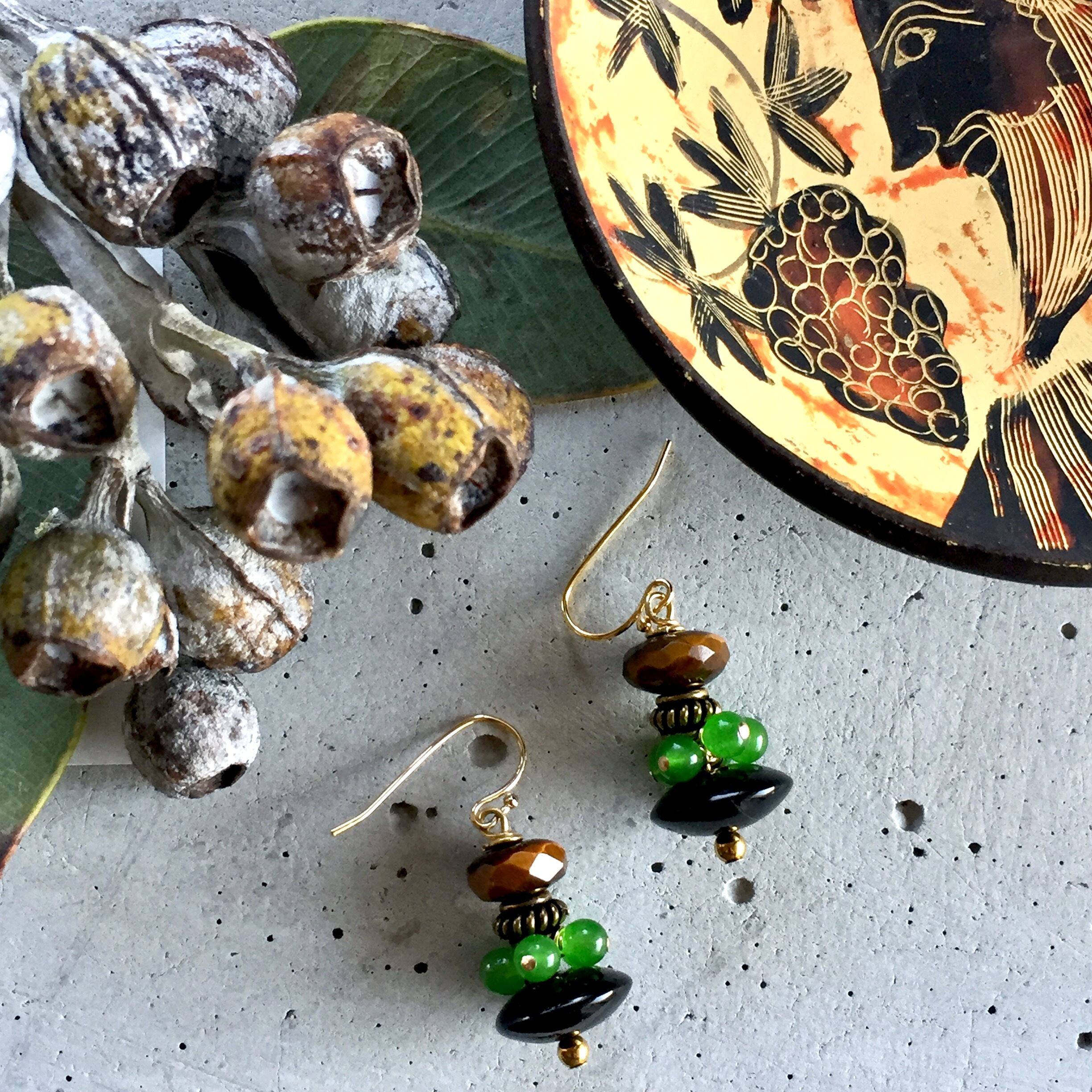 天然石のオニキス.タイガーアイ.ヘマタイト.カルセドニーを使いオリエンタルな雰囲気の個性的なデザインに仕上げた私のイチオシなデザインです‼️