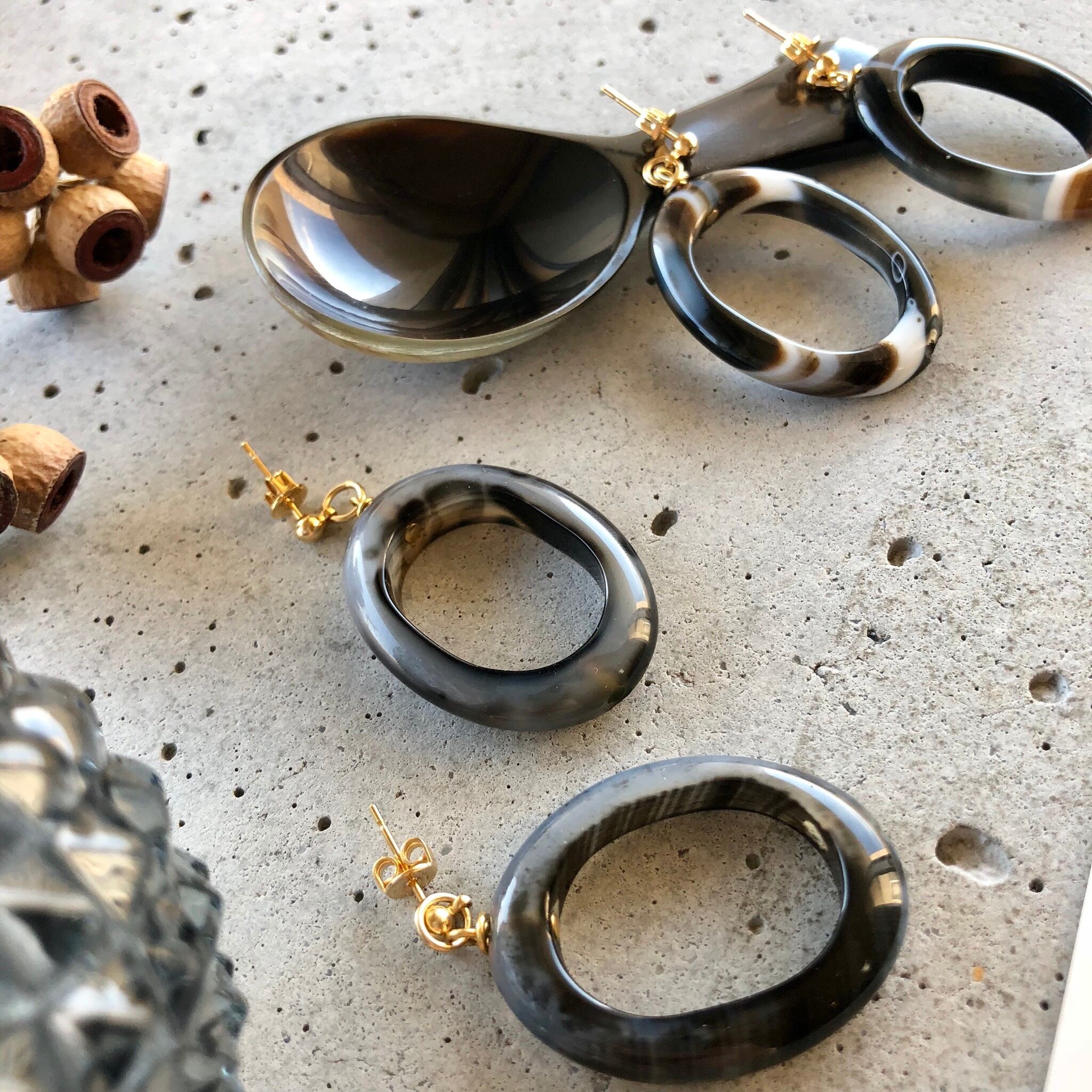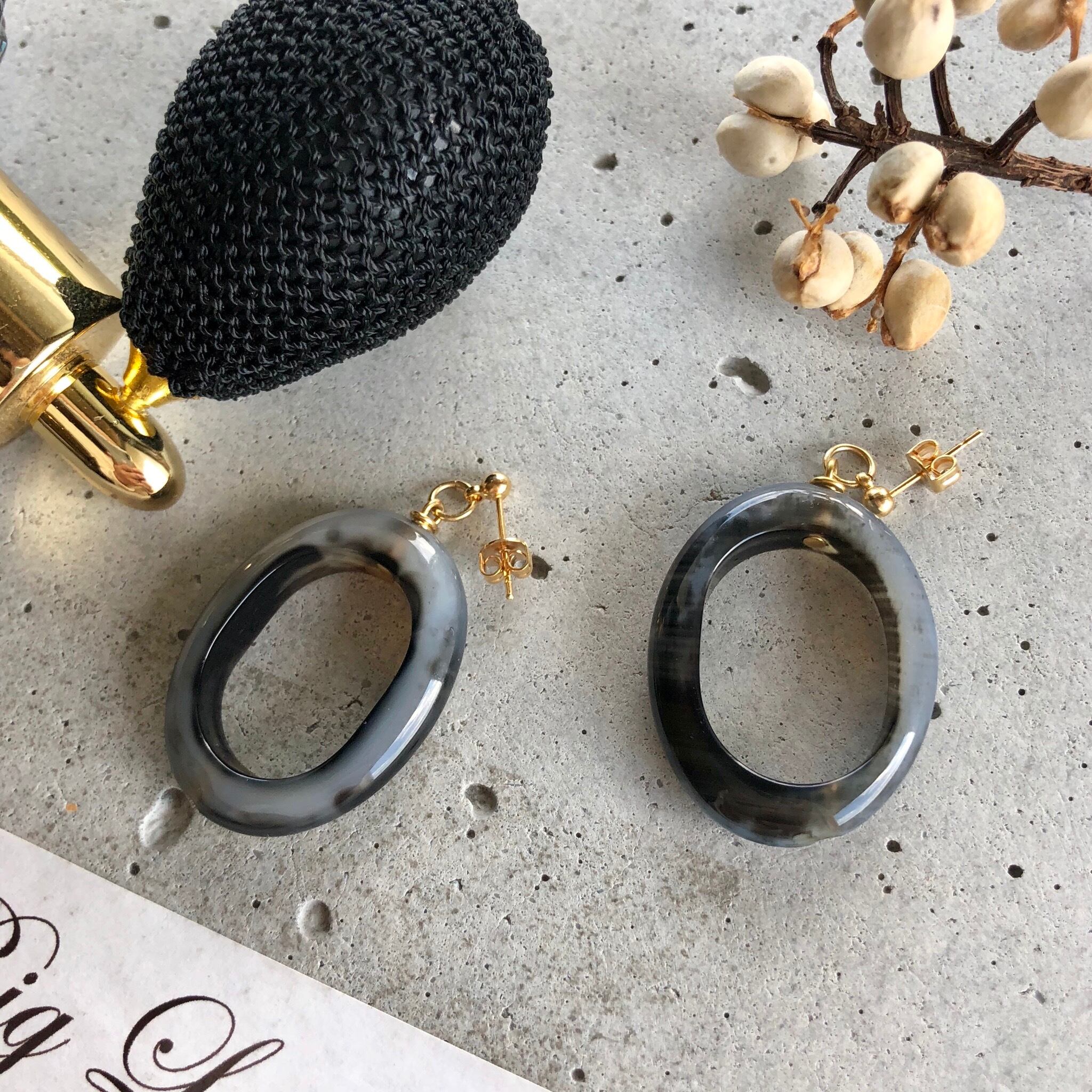 モダンな雰囲気でカッコ良い天然石のメノウピアス✨